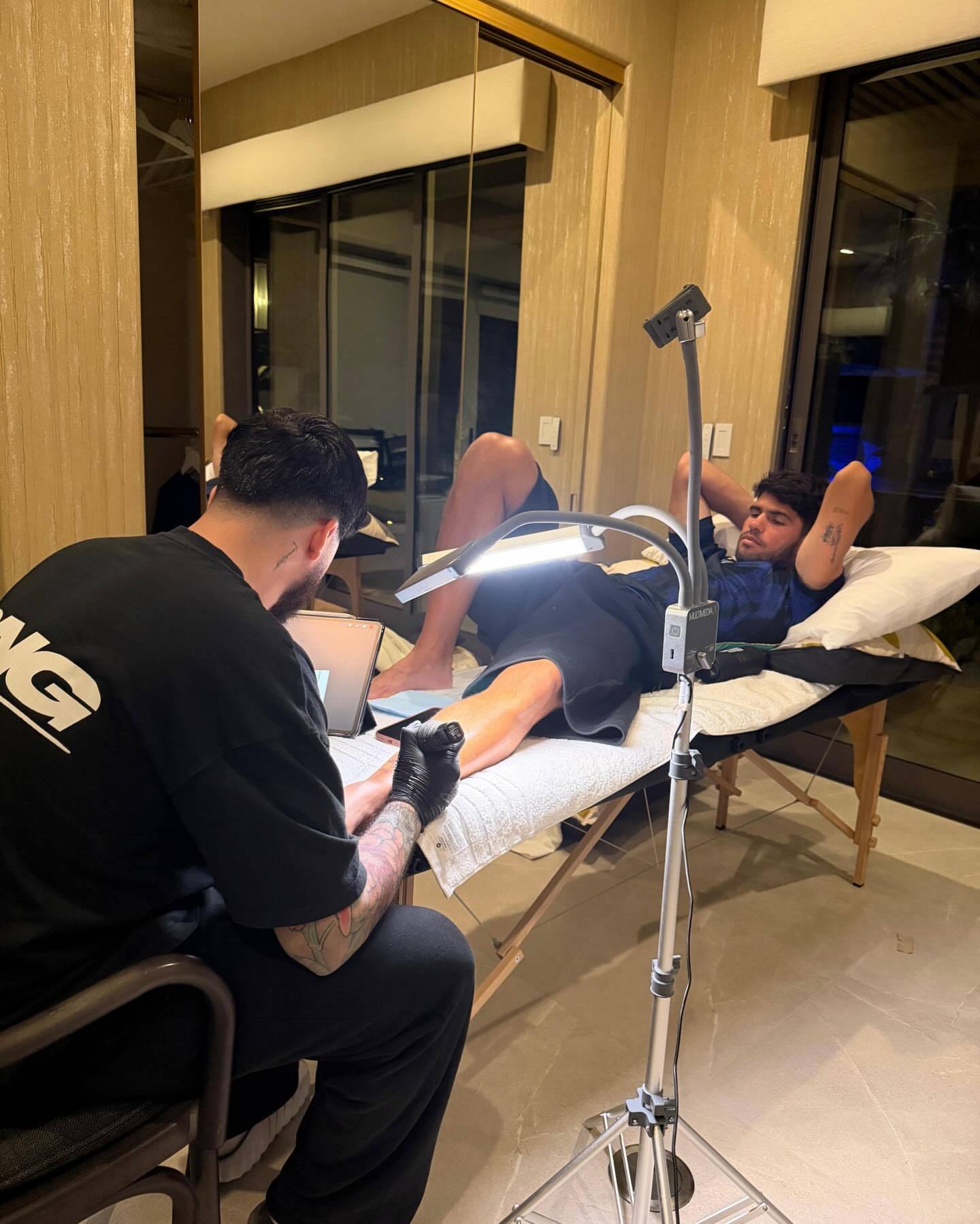 阿尔卡拉斯阿尔卡拉斯 新纹身出现了,应该是澳网夺冠成就全满贯后获得的灵感,不过袜子🧦挡住了半截,看不全。ATP