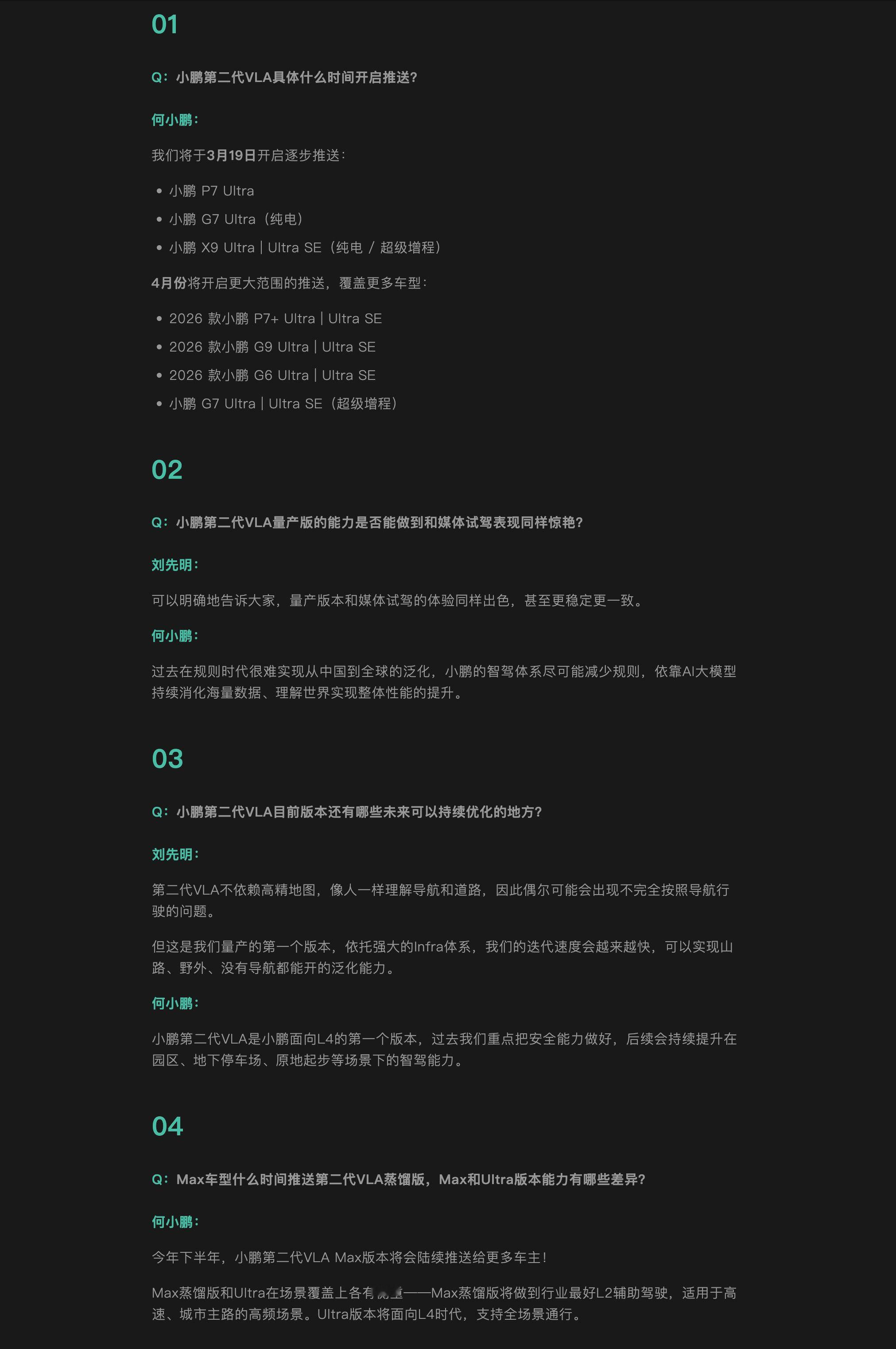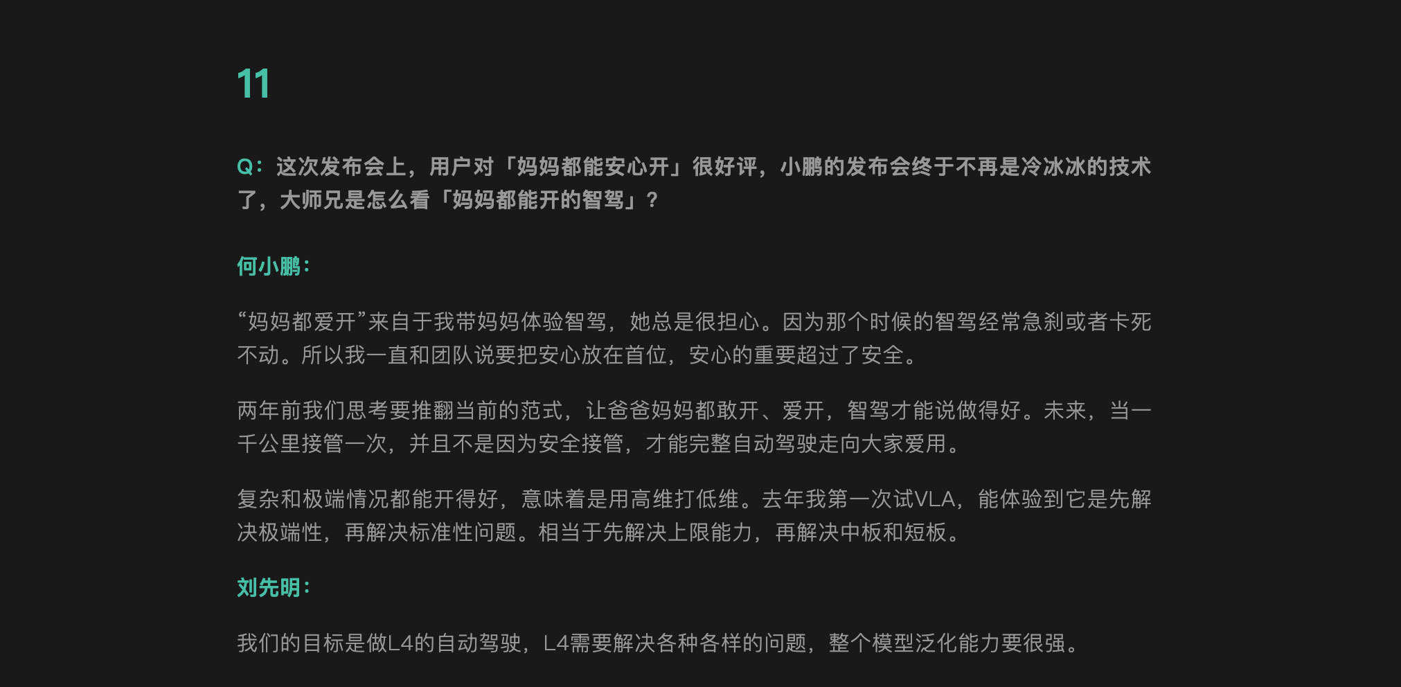 给大家简单梳理一下「Ask me Anything」的内容,其实就是小鹏第二代VLA智驾这个月就要正式推送了,小鹏师兄也做了几个问题的回答,我来帮你划个重点: