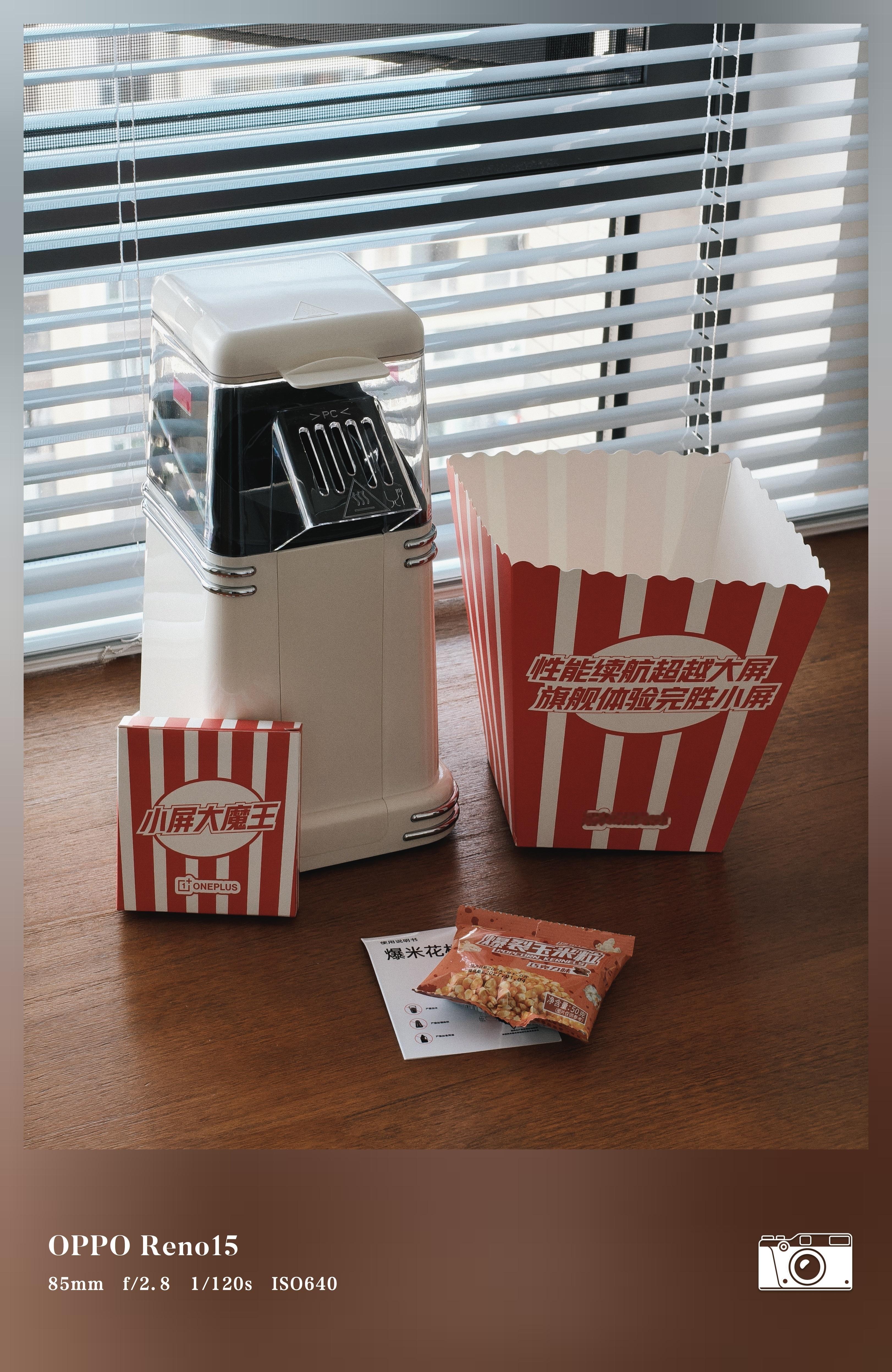 一加15T邀请函Get~是一台爆米花机。我第一次弄,用一小包玉米粒就爆出了一大桶