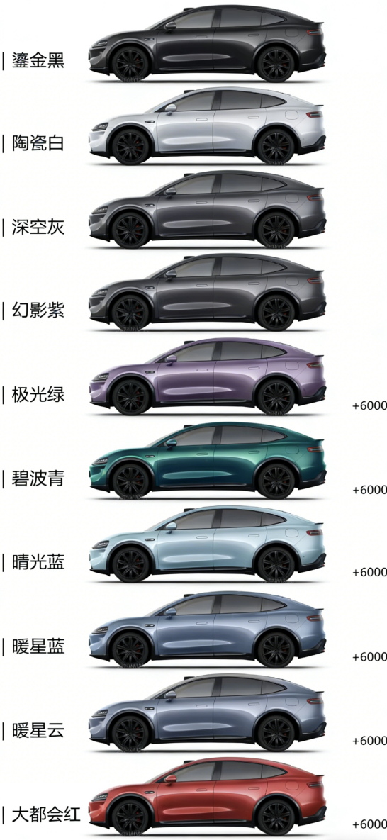 智界R7智界s7 智界R7和新S7推出新颜色“暗夜紫”,3月23日跟大家见面,不是那种很艳,很挑人挑车的紫,偏深偏稳重,实车应该更有质感,另外还有一款活力橙新颜色,一深一浅,男生和女生都多了新选择。聊一个好玩的,有调查报告说,男生比女生更喜欢紫色,正好和大家的印象是相反的。算一算哈,加上暗夜紫和活力橙,智界一共有11种车色了,我把另外9种给大家放出来,看看您最喜欢哪种颜色。余承东官宣智界新色活力橙