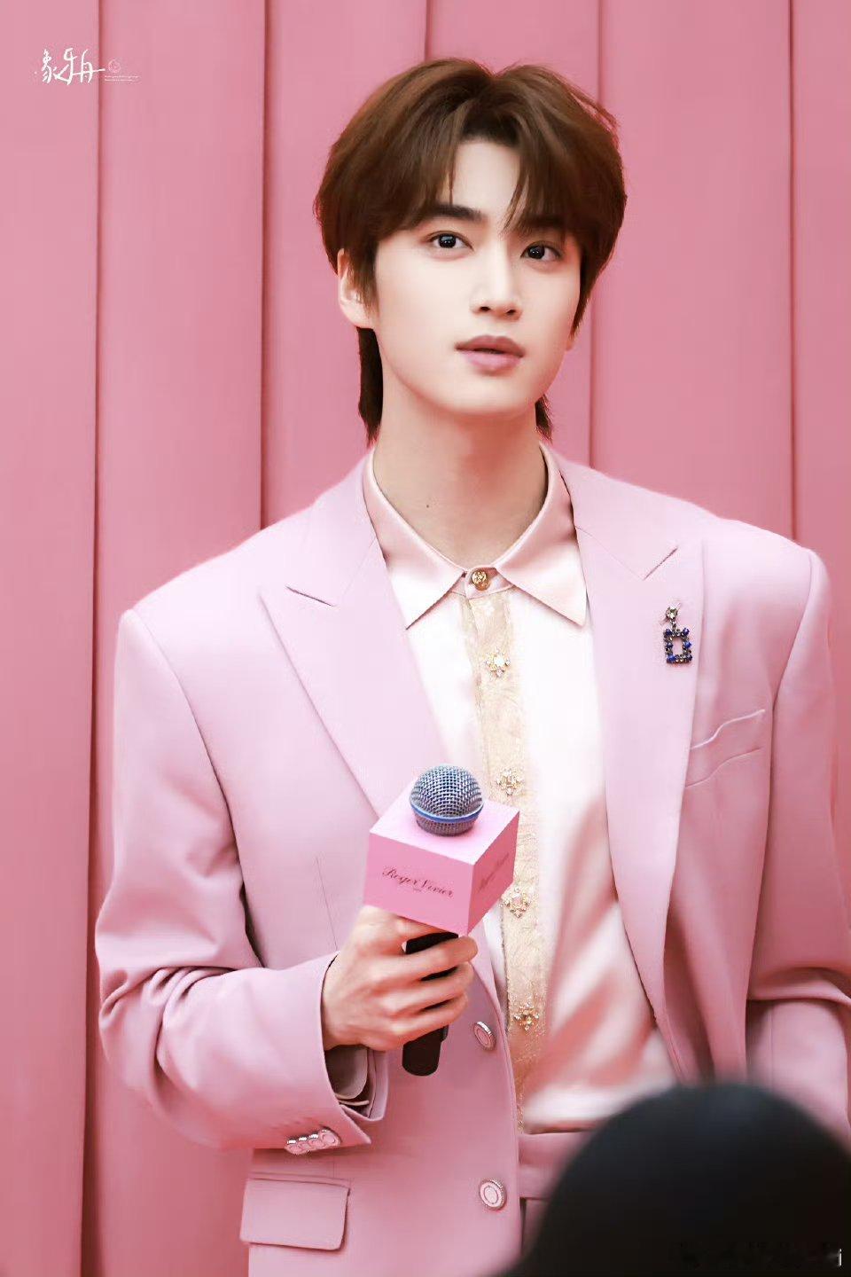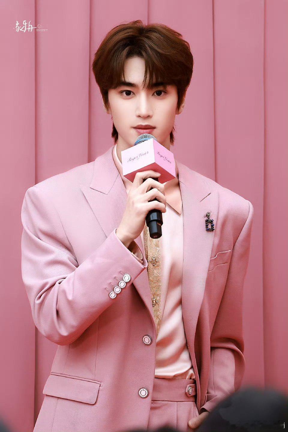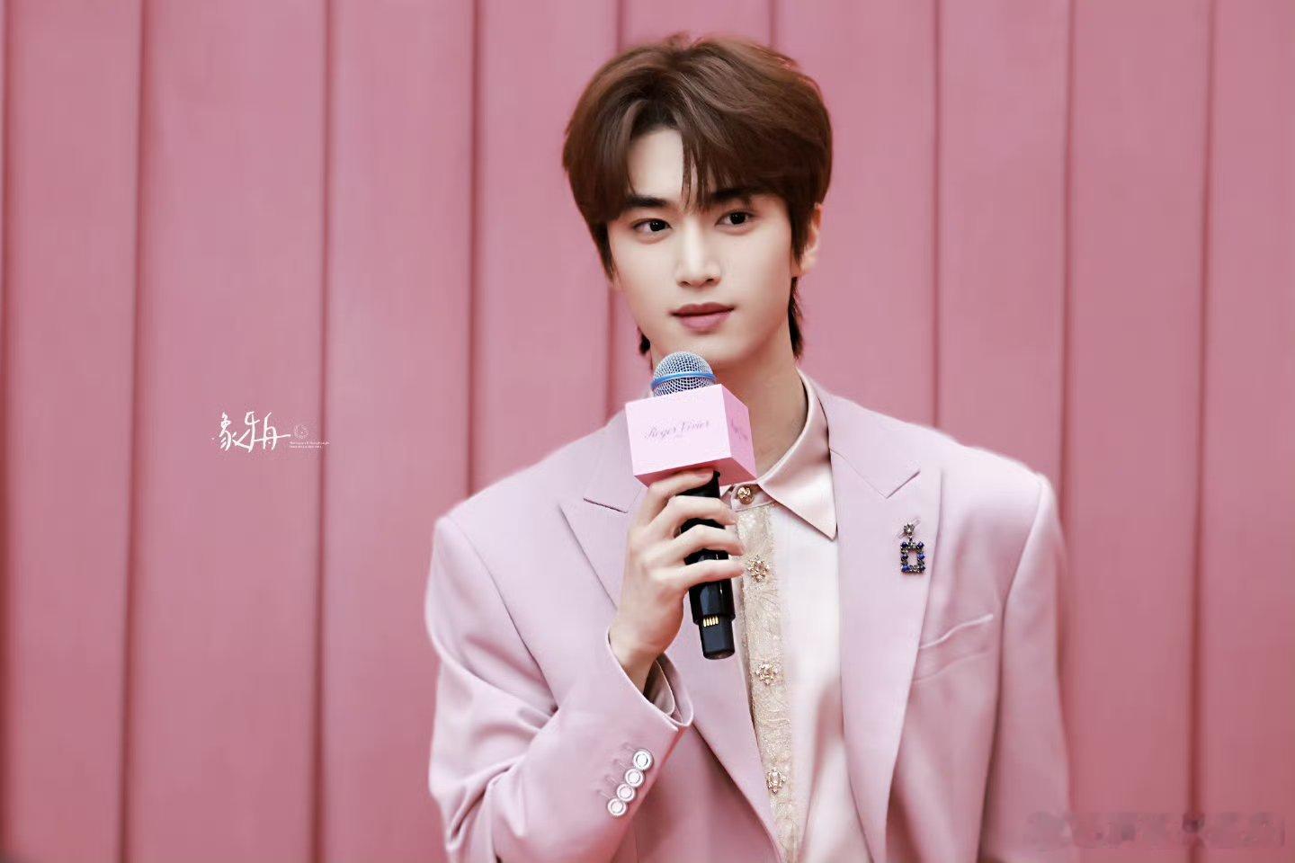张康乐粉色缎面西装造型 贵气与少年气的完美结合