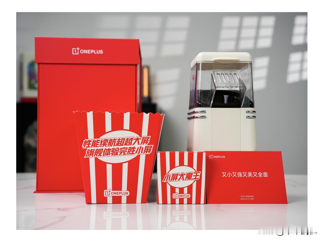 刚刚收到了一加15T的发布会邀请函,邀请函依旧走实用路线,是一款「爆米花机」,一小把玉米粒就能爆出一大桶爆米花,似乎在暗示一加15T虽形态小巧,却有极强的爆发力,小身材也能有大大的能量。
