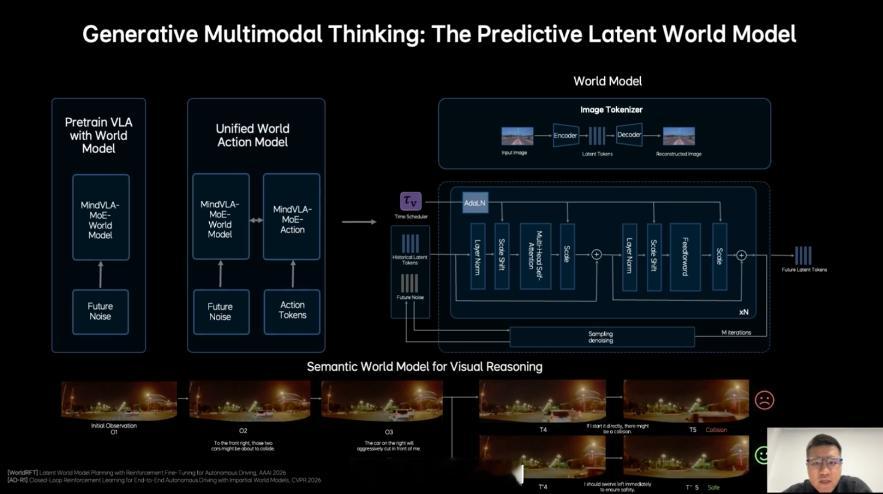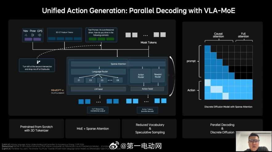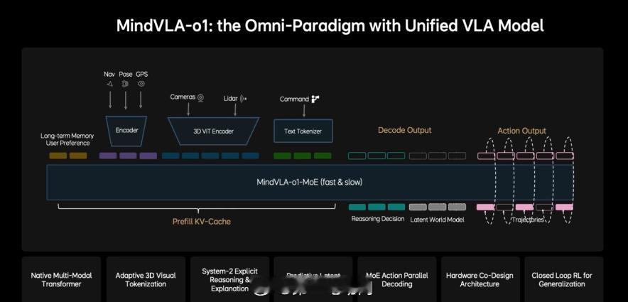 理想这次做的 MindVLA-o1,核心其实就是一件事:让车像老司机一样,会“提前想几步”。它把三件事放进一个统一的大模型里: