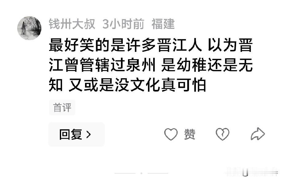 @外星人23092,你有什么资格笑晋江文化沙漠? 晋江县是全国十八个千人进士县之一! 晋江池店、安海出过多少进士状元你知道吗? 晋江出了院士你知道吗? 福建历史上第一个状元是晋江人,你知道吗? 晋江历史上出了几个大儒你知道吗? 还笑没文化真可怕?你历史0分!民国废府时晋江县还真管辖过你们!