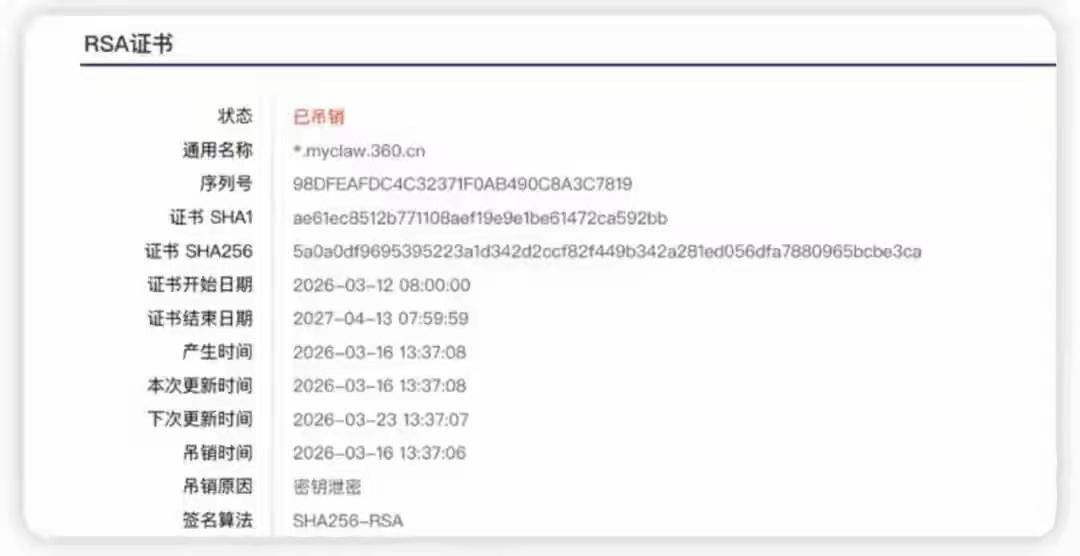 卖“安全”的翻车最致命!360闹出年度笑话:把家钥匙藏门口,36亿瞬间没了 都说“安全是360的命根子”,但这次,周鸿祎被自家的“虾”狠狠坑了一把。 为了在AI风口分一杯羹,周鸿祎亲自站台,力推“安全龙虾”OpenClaw智能体。他不仅喊出“不发展养虾才是最大的不安全”,还穿上定制LOGO服搞全国巡装,誓要在AI赛道杀出一条血路。3月14日,这款定价169元起、主打一键部署和3000+技能的产品高调上线,瞬间吸引大量用户。 然而,产品刚出炉,就被技术博主扒了个底朝天。有网友发现,360的安装包里,竟然一字排开放着官网的核心加密密钥和证书!这串“万能钥匙”无需任何黑客技术,解压就能拿,有效期还长达数年,能解锁360所有相关子网站。相当于360把自家的保险柜钥匙,直接塞进了产品说明书里,还满大街分发。 这出“自杀式”泄密,代价惨烈。消息发酵后,三六零股价暴跌,市值蒸发36亿,直接把去年好不容易赚到的2-3亿利润亏出去十几倍。 最讽刺的是,360的立身之本就是“安全”。如今卖点成了最大的槽点,用户信任瞬间崩塌。这种低级错误,不是被高手攻破,而是内部从开发到发布的全流程安全规范彻底失灵。连最基本的敏感文件校验都没做,这不仅是打脸,更是把自家金字招牌砸得粉碎。 本想靠“安全”在AI养虾赛道弯道超车,结果却因最基础的安全疏忽翻了车。周鸿祎的苦心孤诣,换来的却是市值与口碑的双重暴击。安全无小事,尤其是对靠安全吃饭的人来说,这36亿的学费,交得太疼了。AI安全漏洞 奇虎周鸿祎 360造假