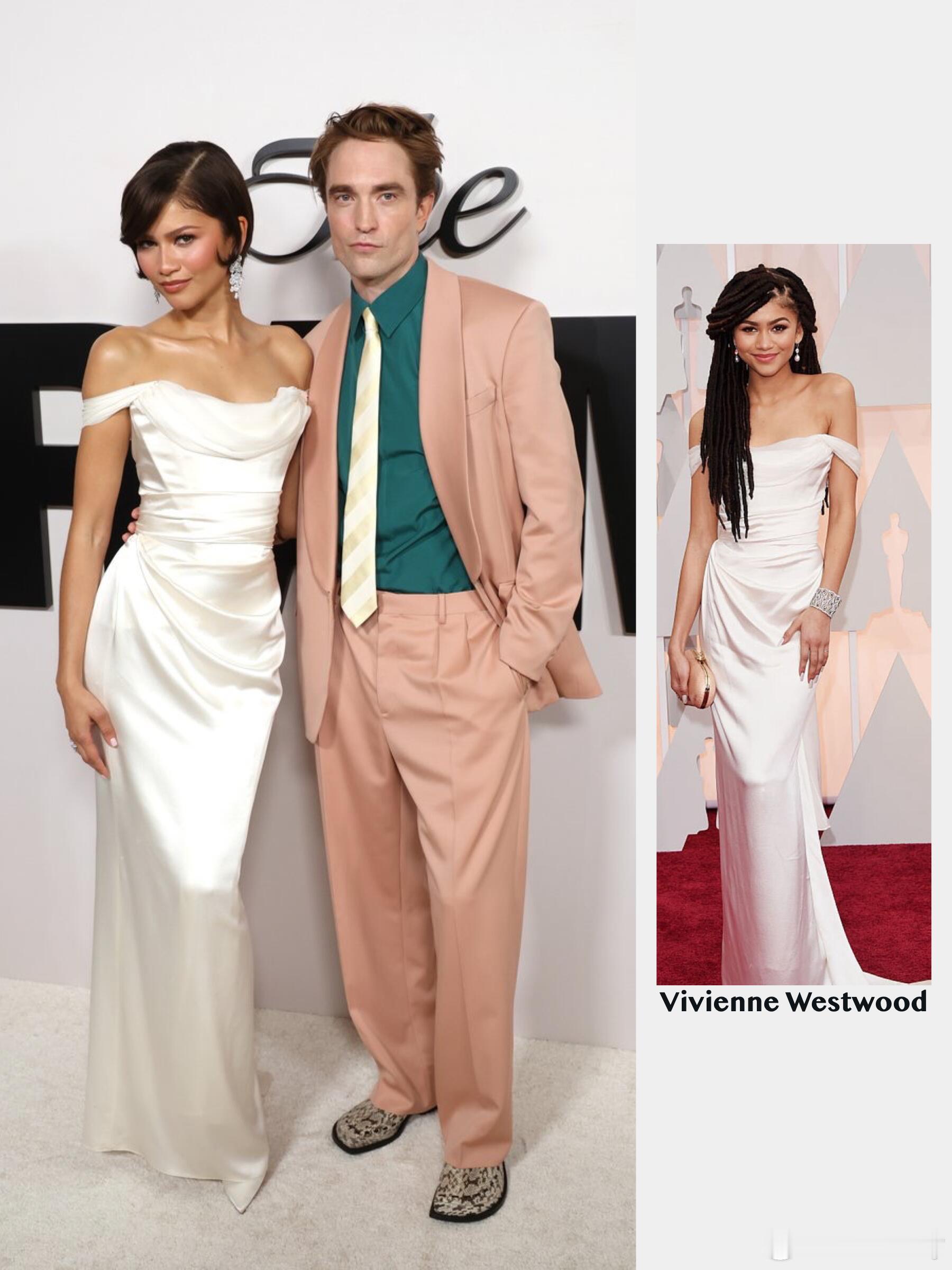 The Drama首映,赞达亚罗伯特帕丁森"情侣档"又合体啦!赞达亚重穿10年前礼服Zendaya和Robert Pattinson出席《The Drama》首映礼,重穿在2015年奥斯卡红毯穿着的Vivienne Westwood礼服,一身缎面白色礼服搭配复古的发型,赞姐出手一如既往的稳,闪闪发光!