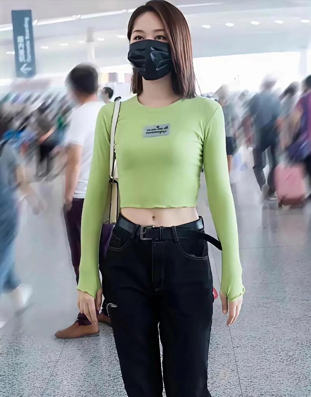 盈莹这是把“身材焊”在身上了吧😎 牛油果绿上衣一穿,腰线那是相当能打! 黑牛仔