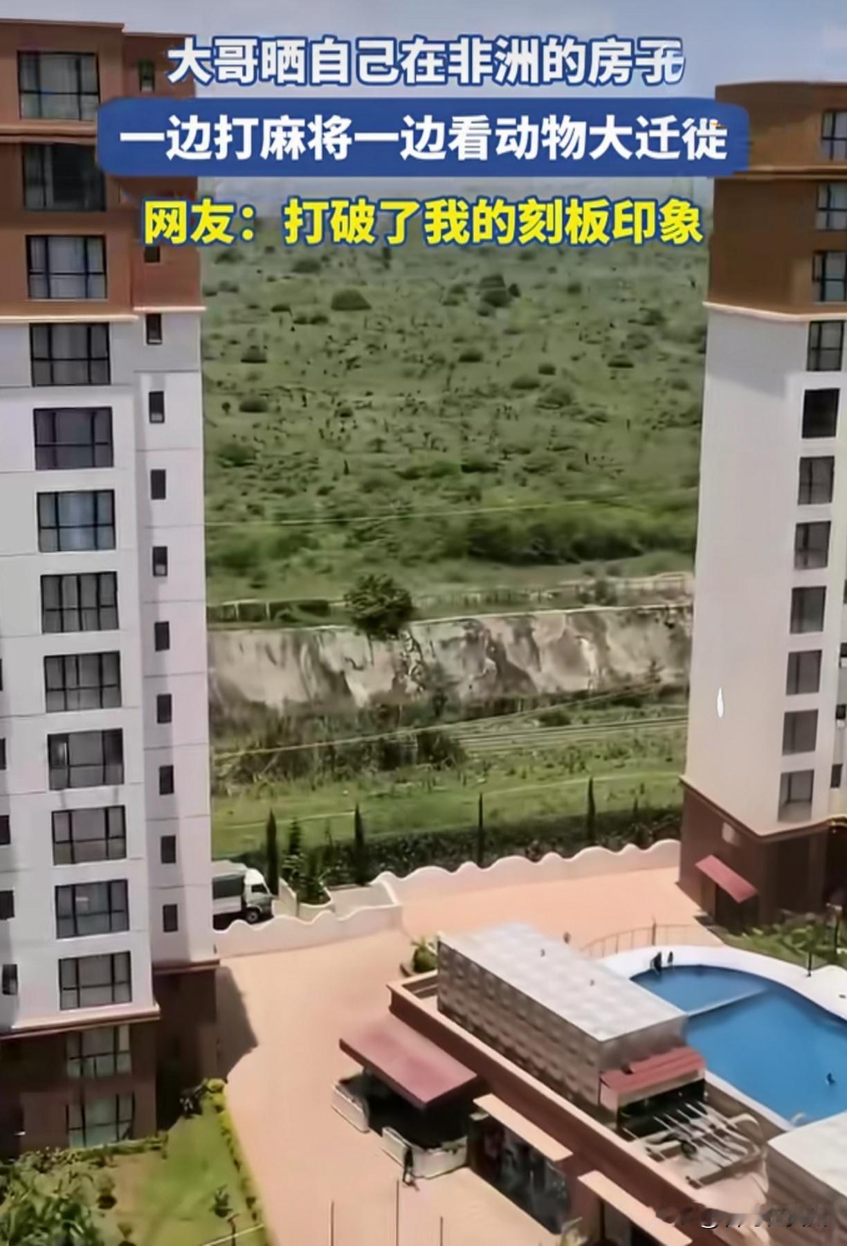 非洲大哥阳台打麻将,抬头一看窗外动物大迁徙!网友炸了 谁能想到!在非洲肯尼亚的高层住宅里,几个中国大哥正围在一块搓麻将,其中一位摸到一手好牌,抬头刚想显摆一下,结果隔着落地窗,外面乌泱泱一群角马和斑马正在那搞大迁徙 ! 实话实说,我刷到这段视频的时候,手里的泡面瞬间就不香了。你看视频里那画面:客厅窗明几净,摆的是中式实木家具,桌上茶水瓜子都备齐了,麻将碰得叮当响,几个人脸上那叫一个惬意。镜头一转,窗外是什么?不是咱们熟悉的工地和车流,是一望无际的草原,是扬起的尘土,是《动物世界》里才有的那种野生大场面 。这种中式烟火气和非洲狂野自然直接怼到一起,那个视觉冲击力,真能把人看呆。 很多老铁可能觉得这是特效,或者是大哥为了拍视频特意去住的野奢酒店。其实真不是!这大哥大概率就住在肯尼亚的内罗毕。这城市有个特别“变态”的设计——全球独一份的“野生动物园就在市中心边上”。内罗毕国家公园离市区就8公里,一脚油门的事,跟咱们去趟郊野公园差不多 。 而且那边的华人社区现在成熟得吓人。中餐馆、中超、甚至做卤味的老乡,要啥有啥。咱们在国内吃的火锅底料、老干妈,那边超市货架上摆得整整齐齐 。对于在那边的华人来说,周末开车去草原看个狮子、瞅瞅角马过河,还真不是啥值得发朋友圈炫耀的事儿,就是人家日常的“农家乐”休闲。 看到这,你是不是也跟我一样,脑子里蹦出两个字:反内卷? 咱们在这边挤早高峰、熬夜改PPT、周末还要应付各种内耗的时候,人家推开窗就是风吹草低见牛羊。这种“慢节奏”的生活,精准戳中了咱们国内打工人最脆弱的那根神经 。这才是真正意义上的“去班味儿”——不是靠周末去酒吧蹦两下就能解决的,而是要把这种松弛感活成日常。 其实仔细想想,我们羡慕的不仅仅是那一扇能看到动物的窗户,更是那种能随时从琐碎日常里抽离出来的自由。有人住高楼、有人在深沟,有人看野兽、有人摸麻将。 原来最极致的浪漫,不是去远方寻找风景,而是把中式的烟火气,活成了非洲草原上的日常。 你被这种“兽景房”生活羡慕到了吗?如果给你一次机会,你是愿意继续在城市里卷,还是去非洲草原边上支个麻将摊?评论区聊聊你的“理想躺平地”! 作者声明: 内容取材于网络,综合自搜狐新闻、中华网及人民网关于非洲华人生活的相关报道 。