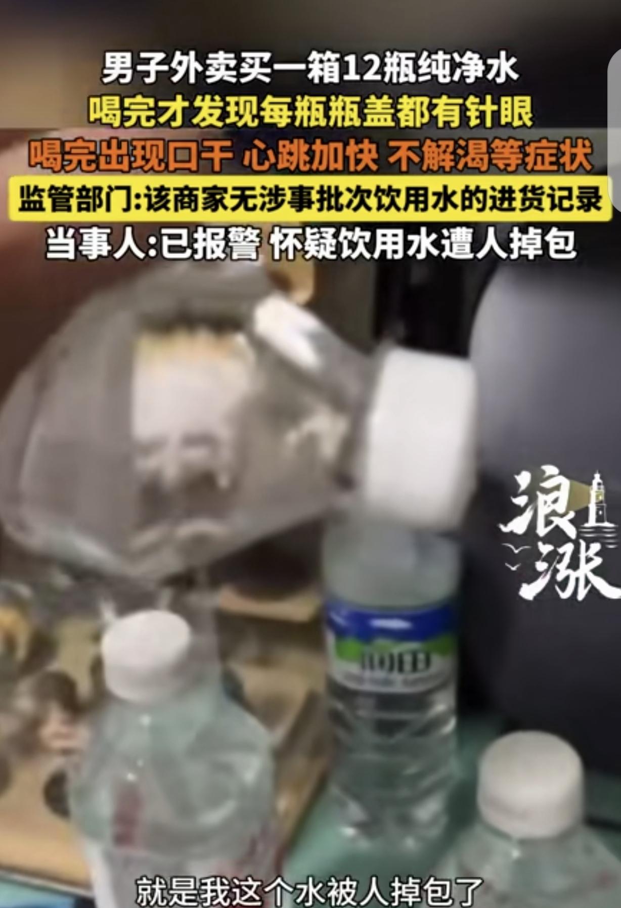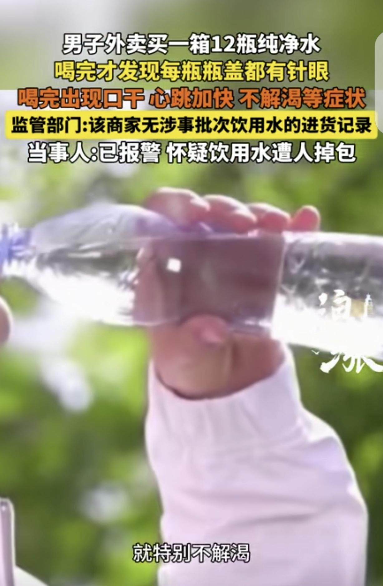 吉林四平,一男子通过外卖,买了一箱12瓶纯净水,可喝了5瓶后,他发现越喝越渴,还心跳加速。他感觉不对劲,拿起瓶装水仔细查看,竟然大吃一惊,只见12瓶全带“针眼”,一挤就往外喷水,吓得男子赶紧举报,相关部门一核查,发现卖家压根没这个批次水的进货记录,男子怀疑水被掉包,里面到底被加了什么东西?他想想都后怕,立马报了警。 白先生平时工作忙,经常靠点外卖解决日常所需。 这天,他像往常一样,通过外卖平台买了一箱12瓶的纯净水,想着放在家里,随时都能解渴。 水送到后,白先生也没多想,随手就打开一瓶喝了起来。 刚开始,他没觉得有什么异样,可连着喝了5瓶后,他感觉不对劲了。 不仅越喝越渴,而且心跳还莫名地加速,胸口像揣了只小兔子,“砰砰砰”地跳个不停。 白先生心里犯起了嘀咕,这纯净水怎么喝着这么难受呢?他停下喝水,拿起手中的瓶子仔细端详起来。 这一看,可把他吓得不轻,只见瓶子上有小小的“针眼”,不仔细看根本发现不了。 他赶忙又拿起其他几瓶,逐一检查,发现12瓶纯净水全都带着这样的“针眼”。 白先生试着轻轻挤了一下瓶子,水就像喷泉一样从“针眼”里往外喷。 他顿时觉得头皮发麻,后背直冒冷汗,心想这水肯定被人动了手脚,自己喝了这么多,会不会对身体造成严重伤害啊? 他越想越害怕,他赶紧拨打了相关部门的举报电话。 相关部门接到举报后,迅速行动起来,对这批纯净水展开核查。 经过一番调查,工作人员发现卖家压根就没有这个批次水的进货记录。 这也就意味着,白先生买到的这箱水很可能是被掉包了,根本不是正规渠道进货的。 白先生得知这个结果后,又气又怕。他怕的是自己已经喝了5瓶,不知道里面到底被加了什么东西?会不会留下什么后遗症? 为了弄清楚真相,也为了自己的健康着想,白先生毫不犹豫地报了警。 警方介入调查后,开始对这箱水的来源、卖家的情况等进行全面排查。 白先生则每天都在担心自己的身体状况,生怕出现什么问题。他希望有鉴定机构,能以公益形式对水质进行专业鉴定。 这件事给白先生留下了极大的心理阴影,现在他每次喝水都变得小心翼翼,一定要先仔细检查瓶子有没有问题。 他也希望通过自己的经历,提醒大家在购买食品和饮品时,一定要选择正规渠道,多留个心眼,避免遇到类似的情况,不然真的可能会给自己带来无法预料的伤害。 白先生这遭遇真是让人唏嘘不已!外卖买水本是图个方便,却没想到喝到带“针眼”的,身体还出现不适。 卖家没进货记录,水很可能被掉包,这背后黑心操作太可恶。这不仅威胁到消费者健康,更破坏市场秩序。 得加强监管,严惩不良商家。咱们消费者也得提高警惕,买东西多留个心眼,别让类似悲剧重演。 《消费者权益保护法》第11条,消费者因购买、使用商品或者接受服务受到人身、财产损害的,享有依法获得赔偿的权利。 本案中,白先生饮用可能被掉包、添加不明物质的水,身体出现不适,其人身健康受到损害,有权依据此法条向卖家索赔,要求卖家承担相应责任? 对此,你怎么看?