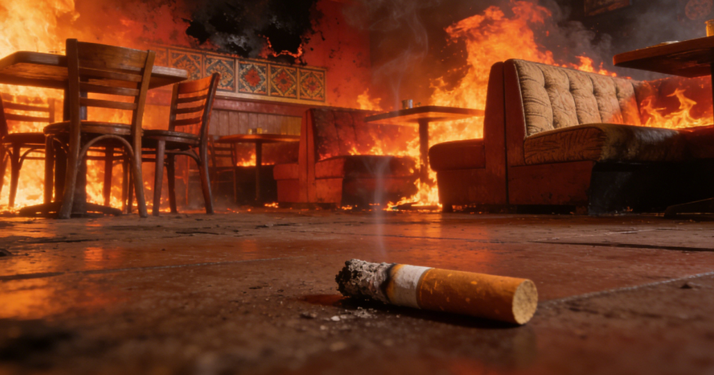 谁能想到,悲剧的开端只是一个不起眼的烟头。一名顾客在餐馆门口抽完烟,随手一丢,恰逢六级大风,未燃尽的烟头顺着仓库门缝钻进堆满纸箱的角落,火星燎原,瞬间点燃了整个餐馆。