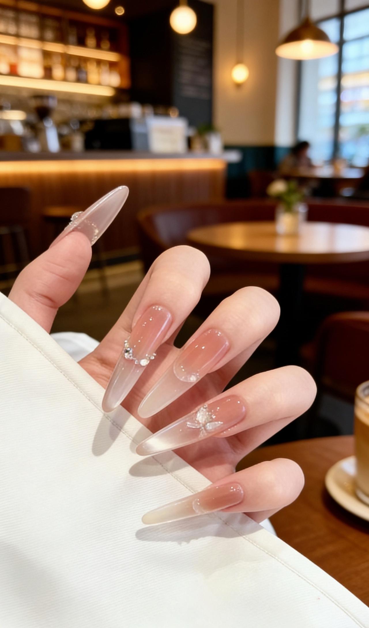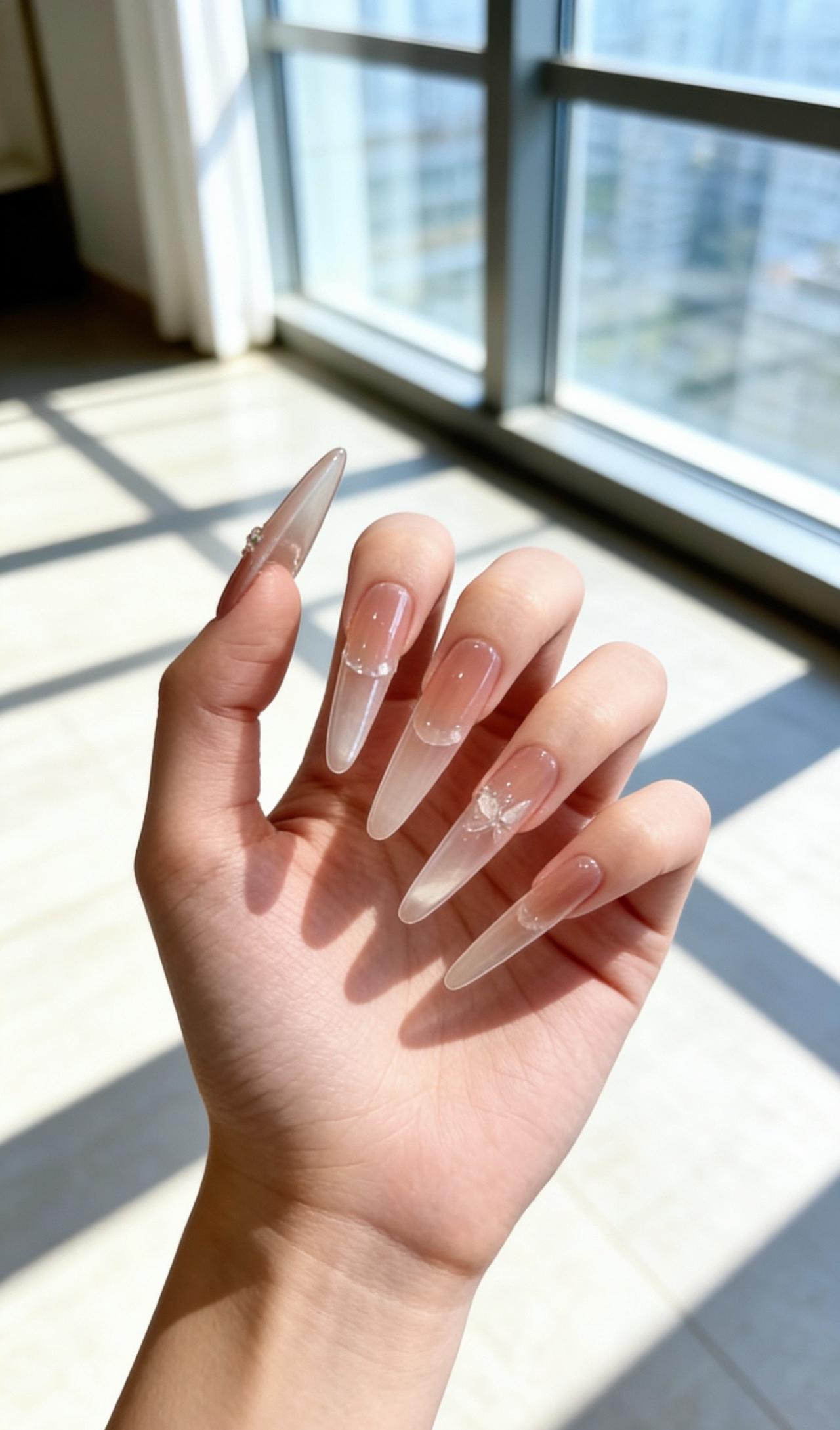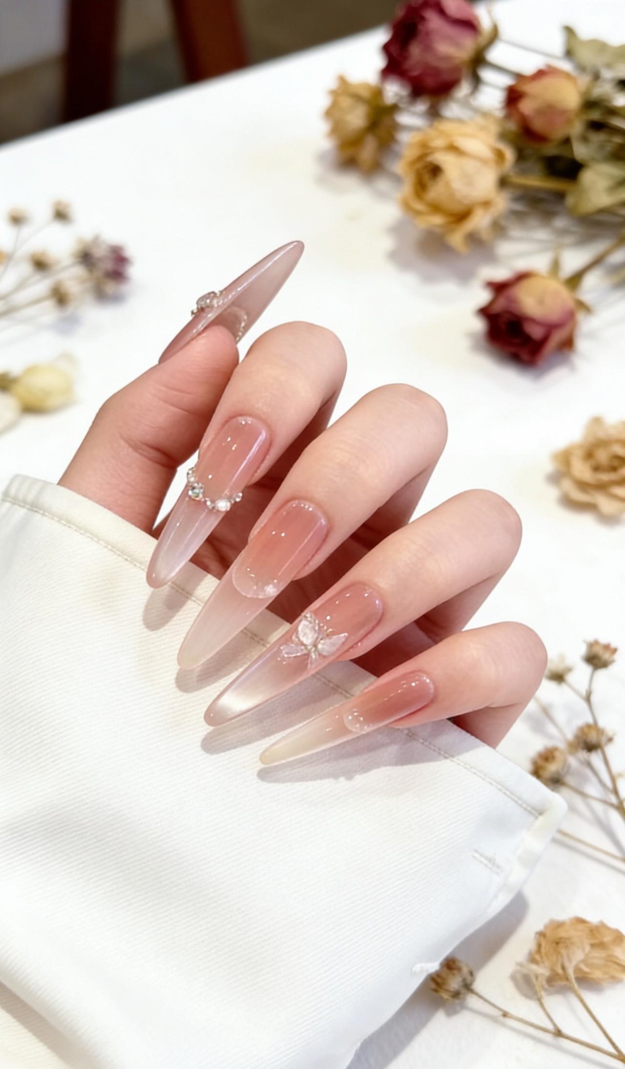 美甲分享 温柔长款美甲 穿戴甲 显白美甲 裸色系美甲