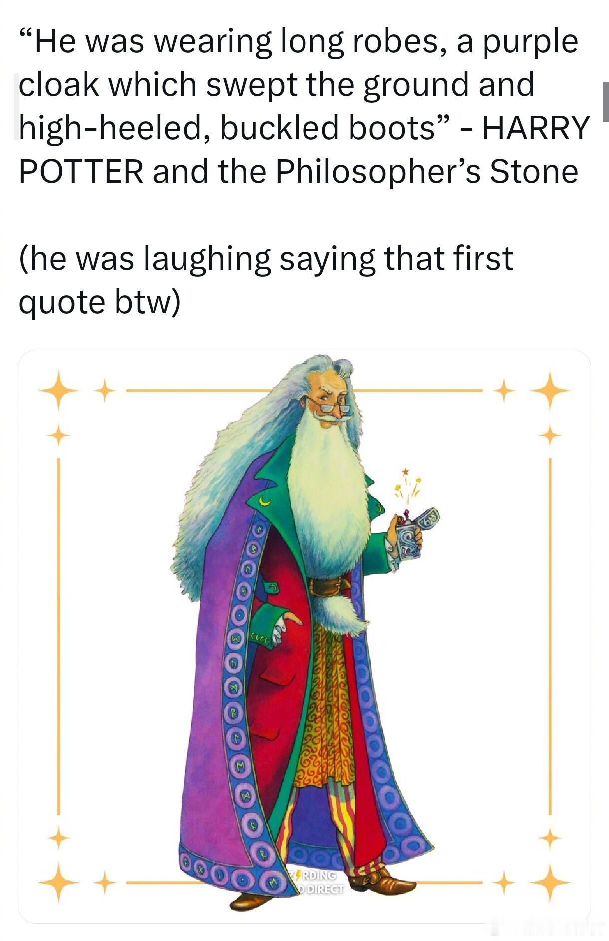 他在接受《Vogue》杂志采访时透露,拍摄 HBO 这部剧其实有点让人发怵。他说:“要化妆、做头发,穿重达 20 磅(约 9 公斤)的戏服,还要踩高跟鞋,一拍就是很长很长的时间。”(他今年 80 岁。)他还笑着引用了《哈利·波特与魔法石》里对邓布利多的描写:“他穿着长袍,披着一件紫色斗篷,斗篷拖到地面,还穿着带扣的高跟靴。”哈利波特
