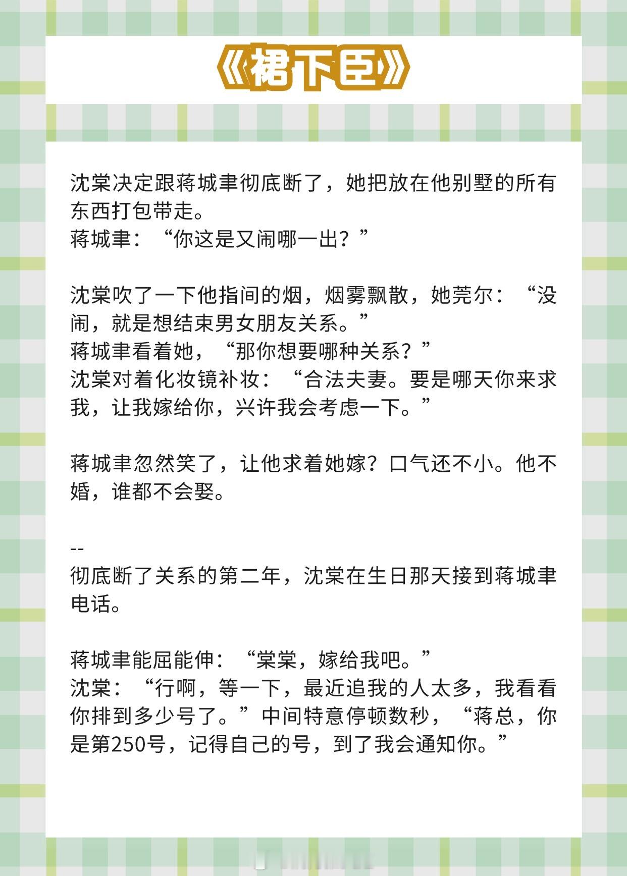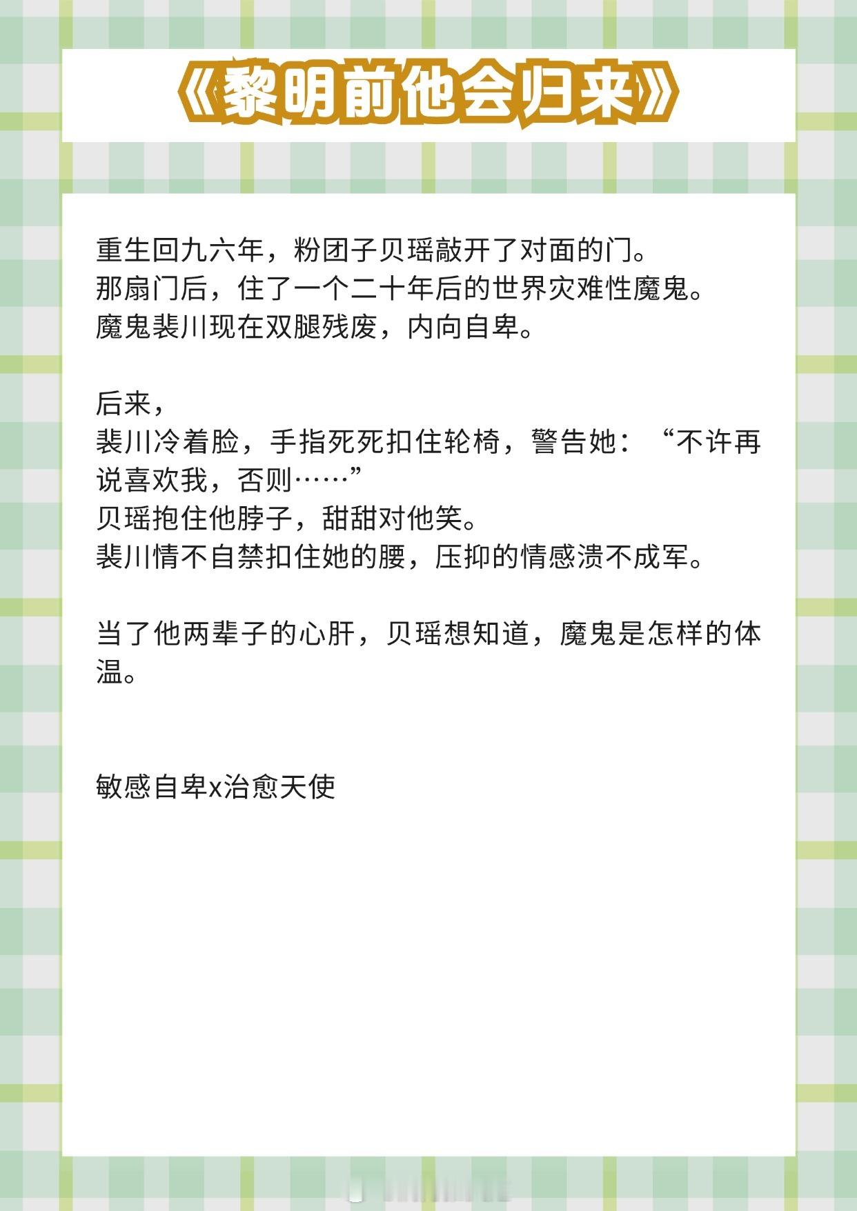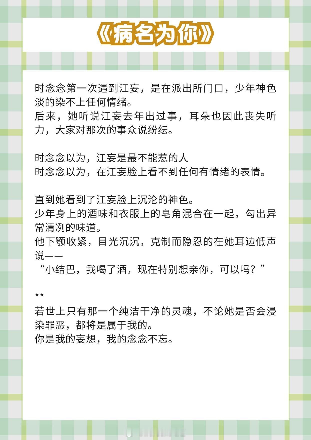 《等风热吻你》作者:唧唧的猫《裙下臣》作者:梦筱二《早春晴朗》作者:姑娘别哭《休眠火山》作者:周晚欲《黎明前他会归来》作者:藤萝为枝(《魔鬼的体温》)《病名为你》作者:甜醋鱼推文推文言情小说推荐