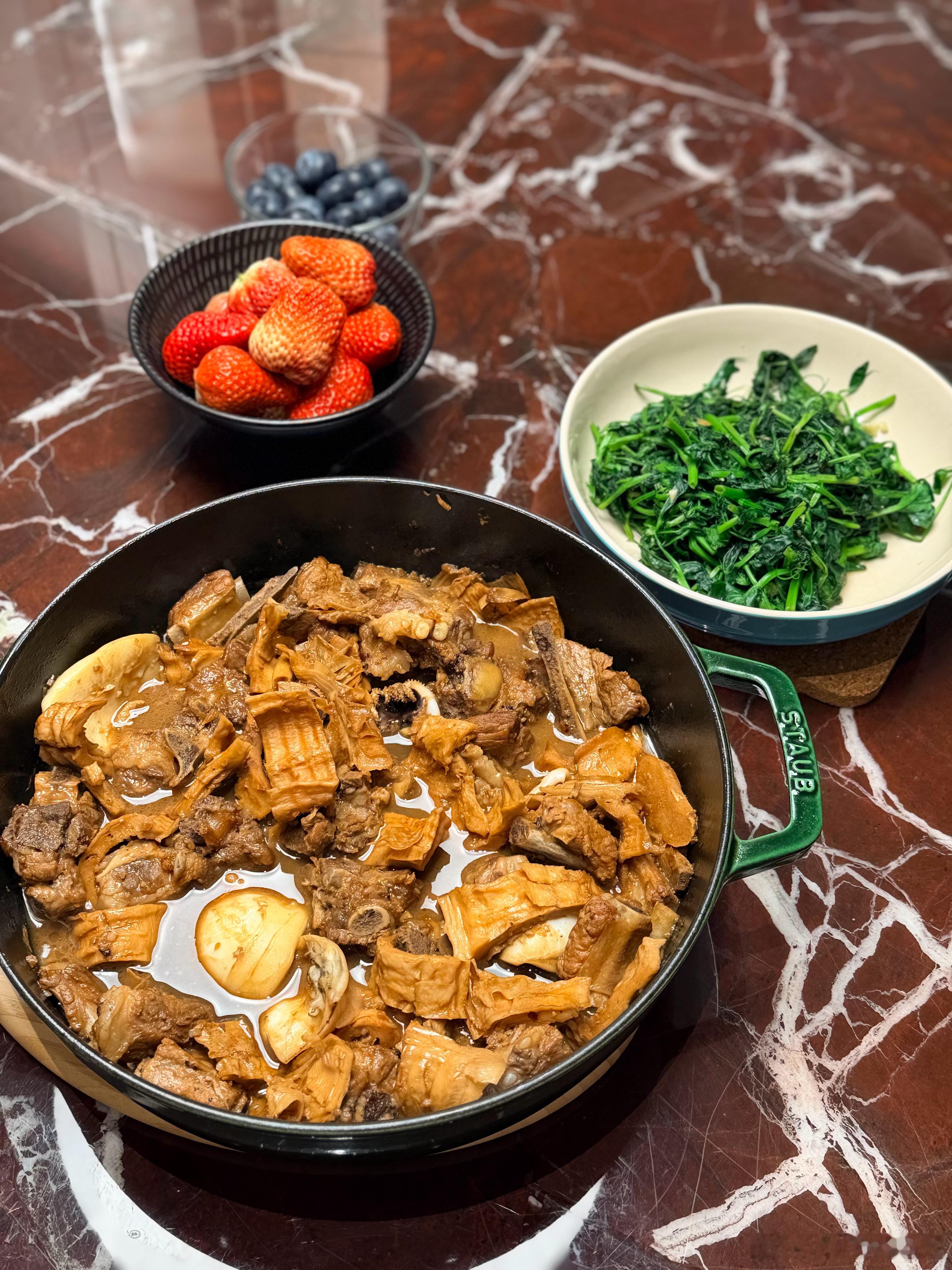今天做了一道家常菜【笋干菜墨鱼烧排骨】