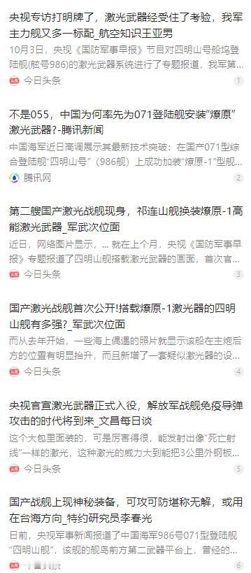 美国怕的可能不是中国导弹,也不是航母,而是中国的舰载激光武器,因为导弹和航母美国也有,可舰载激光武器却只有中国是独一份。 麻烦看官老爷们右上角点击一下“关注”,既方便您进行讨论和分享,又能给您带来不一样的参与感,感谢您的支持! 说起中美海上力量对比,很多人第一反应是导弹、航母这类传统重器,毕竟这些领域美国同样具备强大实力,双方更多是规模与体系的较量。真正让美方感到压力的,是中国在舰载激光武器领域实现的技术突破,这一赛道的竞争逻辑,早已跳出传统装备比拼的框架。 2025 年 10 月,央视国防军事频道正式报道,中国 071 型综合登陆舰四明山舰完成 “燎原 - 1” 激光武器系统加装,进入部队试用阶段,标志着国产舰载高能激光武器走向实用化。同一时期,美国海军将 60 千瓦级 HELIOS 激光武器部署于阿利・伯克级驱逐舰普雷贝尔号,在太平洋海域测试中成功拦截 8 公里外无人机目标,展现出相近的技术推进节奏。 中美舰载激光武器能同步迈入海上测试阶段,核心在于舰艇电力系统的支撑,中国的技术底气尤为突出。马伟明院士团队攻克的中压直流综合电力系统,解决了瞬时大功率设备的供电难题,能为激光武器持续稳定输出高能电力,这是装备上舰的关键前提。 福建舰顺利完成多型舰载机电磁弹射验证,进一步印证了中国舰船电力系统的成熟度。这套中压直流技术不仅支撑起电磁弹射的高效运行,也为后续更大功率舰载激光武器的普及部署,筑牢了可靠的能源根基。 从技术梯队来看,中美舰载激光武器研发处于同一水平,双方都面临大气衰减、目标跟踪、散热续航等共性技术瓶颈。这种良性竞争并非简单的装备攀比,而是持续推动全球定向能武器技术迭代升级,重塑未来海上防空反导的作战模式。 中国舰载激光武器的快速落地,本质是电力系统、材料工程、光学控制等多领域协同突破的结果。相比导弹的有限携弹量、航母的复杂作战体系,激光武器具备低成本、快速响应、持续拦截的优势,这正是美国难以在短时间内形成代差压制的核心领域。 传统海上对抗中,火力投射与平台规模是核心指标,美国凭借多年积累保持领先。而舰载激光武器开辟了新的竞争维度,中国依靠原创电力技术实现弯道切入,打破了美方在高端海战装备上的技术垄断预期。 目前两国都在推进激光武器功率提升与多场景适配,后续还将朝着反导、反舰等更高阶应用方向发展。这场技术竞赛没有绝对的领跑者,比拼的是工程落地速度、系统可靠性与成本控制能力,也将深刻影响未来海上军事力量格局。