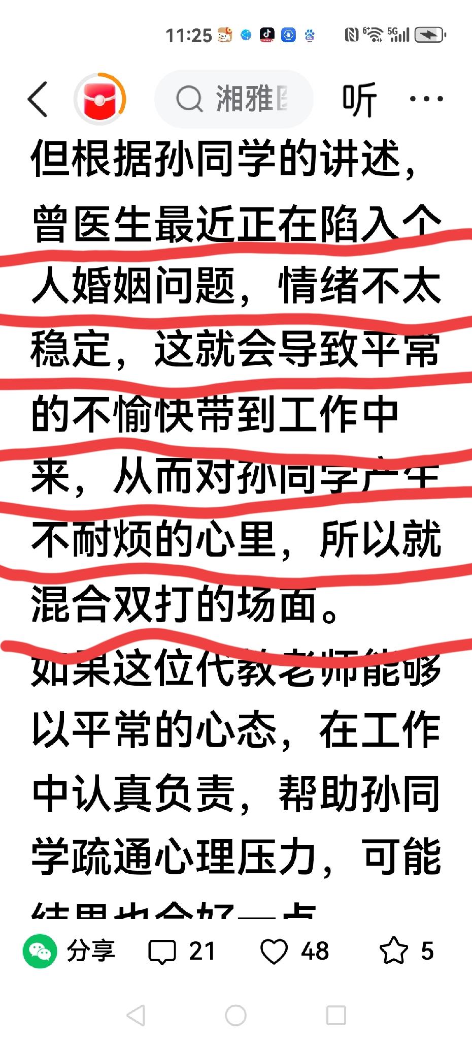 【孙同学又牵出一位】 孙同学的原生家庭: ​​河南普通农村家庭、条件一般,没有背景、没有靠山、没有钱,更没有任何的人脉。 ​​父母都是最朴实的农民,一辈子种地、 打零工、 省吃俭用,面朝黄土背朝天, 把所有力气、所有积蓄、所有希望,全都砸在了女儿身上。 孙同学出事不仅仅是导师一个人,还有一位曾医生,他是谷医生的部下,由于自身婚姻有问题,把情绪带到工作中,尤其对待孙同学,更是不耐烦,导致双杀。
