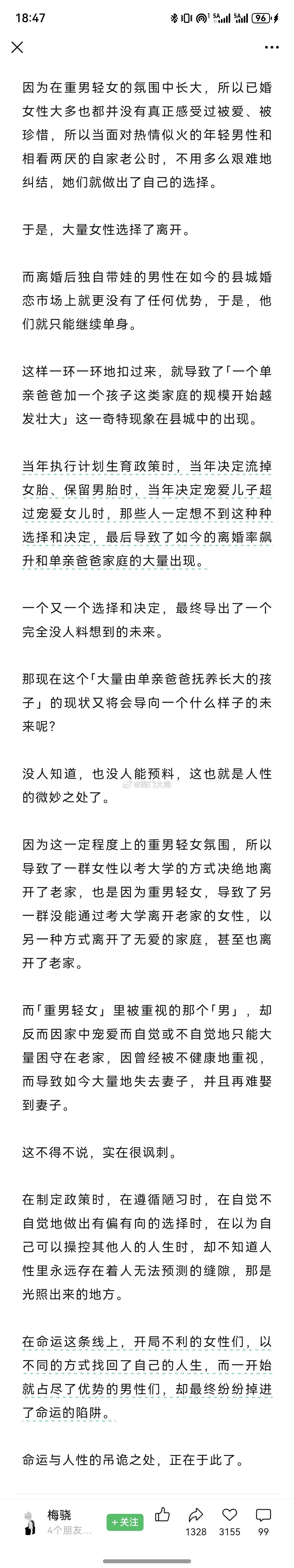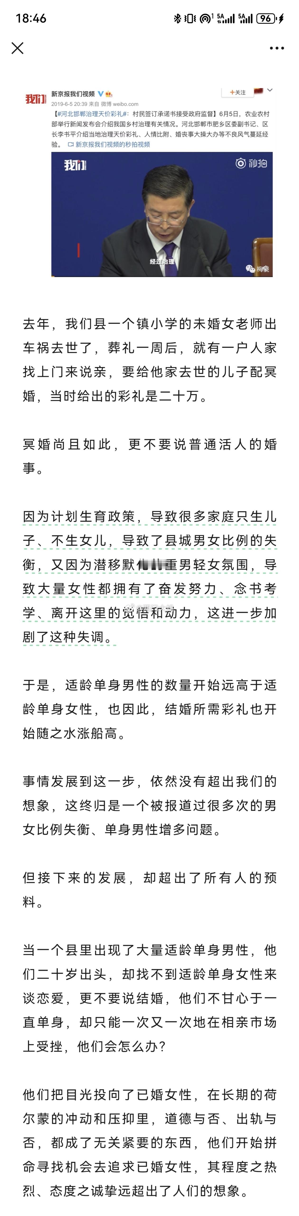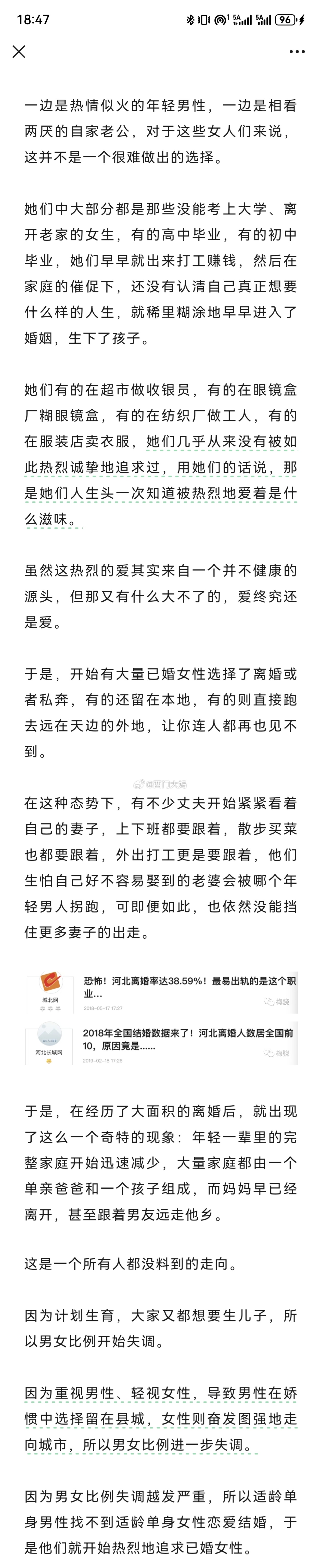 在粉丝的帮助下我找到了那篇认为河北男性结婚难是因为“不够重男轻女”的文章了!强烈