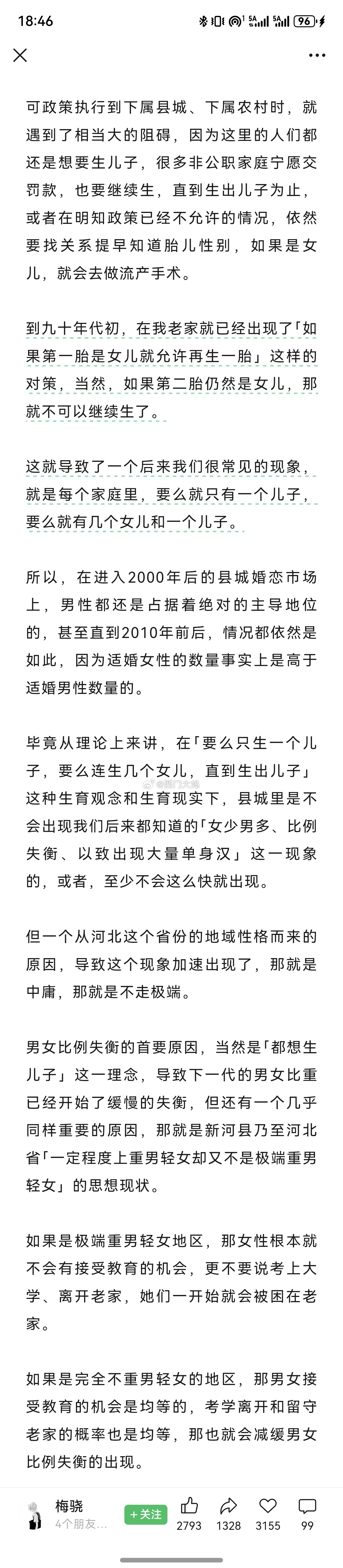 在粉丝的帮助下我找到了那篇认为河北男性结婚难是因为“不够重男轻女”的文章了!