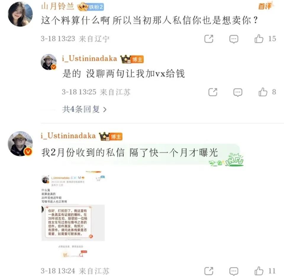 胡歌的初恋女友不是薛佳凝,是16岁北京女孩“雪儿”。 自称是胡歌初恋的Y女士(化名“雪儿”),向狗仔投稿了2000年的两封亲笔信。 狗仔爆料胡歌的初恋女友不是薛佳凝,并公开了胡歌18岁时所写的亲笔信,信中不仅鼓励女方留学、自述努力打工攒钱,只为暑假见面。更用数字暗语“2121771”(谐音“爱你爱你亲亲你”)表白。还附了生活照+试戏照,18岁的胡歌看起来十分清瘦阳光。 时间:胡歌18岁(备考上戏),Y女士16岁(北京读高一),异地恋、两个人书信传情。 此前大众普遍都认为薛佳凝是胡歌的初恋/意难平,原来他的初恋另有其人。对此,胡歌及工作室未发声回应,Y女士曝出更多细节,称两人见过两次,后因为人生轨迹不同结束了这段关系。 看了信,好有真情实感,可惜女方无底线,狗仔称爆料人此举就是为了要💰……只能说人都是会变的,美好的年少心绪,被如今的Y女士出卖了,不知道当年那个18岁的少年会怎么看这件事?