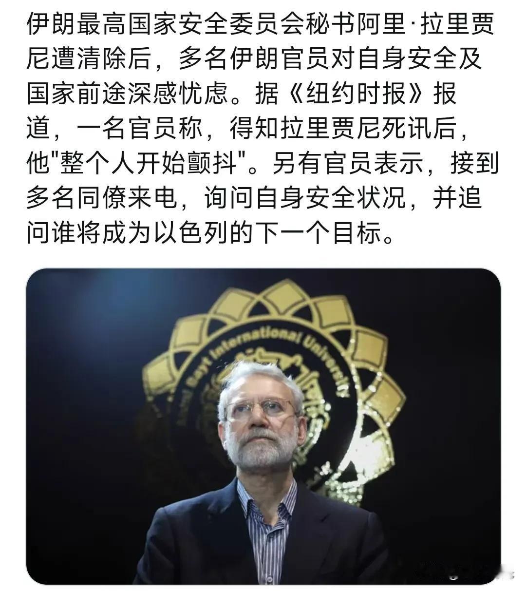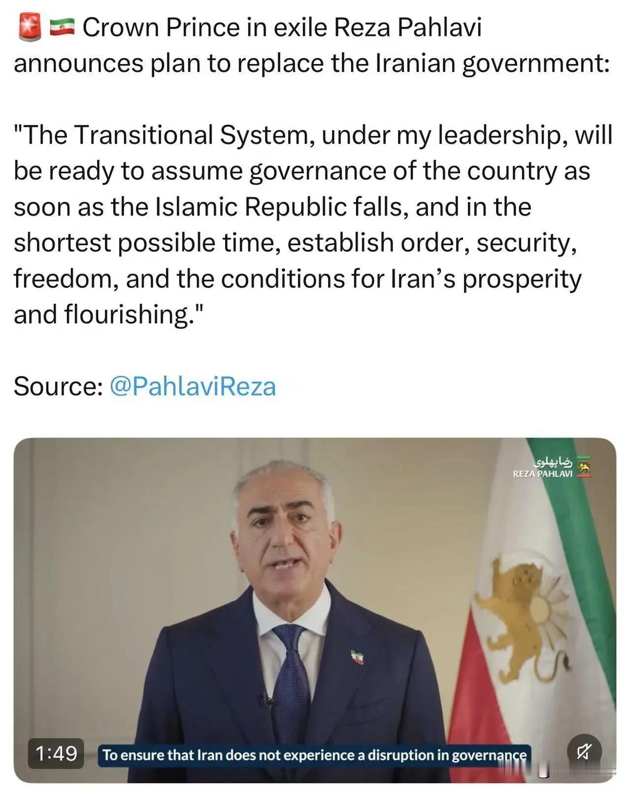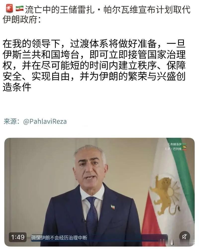 伊朗最高国家安全委员会秘书阿里·拉里贾尼遭清除后,多名伊朗官员对自身安全及国家前途深感忧虑。据《纽约时报》报道,一名官员称,得知拉里贾尼死讯后.他"整个人开始颤抖"。另有官员表示,接到多名同僚来电,询问自身安全状况,并追问谁将成为以色列的下一个目标。 流亡中的王储雷扎·帕尔瓦维宣布计划取代伊朗政府:在我的领导下,过渡体系将做好准备,一旦伊斯兰共和国垮台,即可立即接管国家治理权,并在尽可能短的时间内建立秩序、保障安全、实现自由,并为伊朗的繁荣与兴盛创造条件。