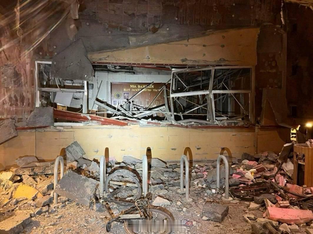 兄弟们,这是巴林海军基地被炸后的景象这个基地是美国海军中央司令部和第五舰队总部所
