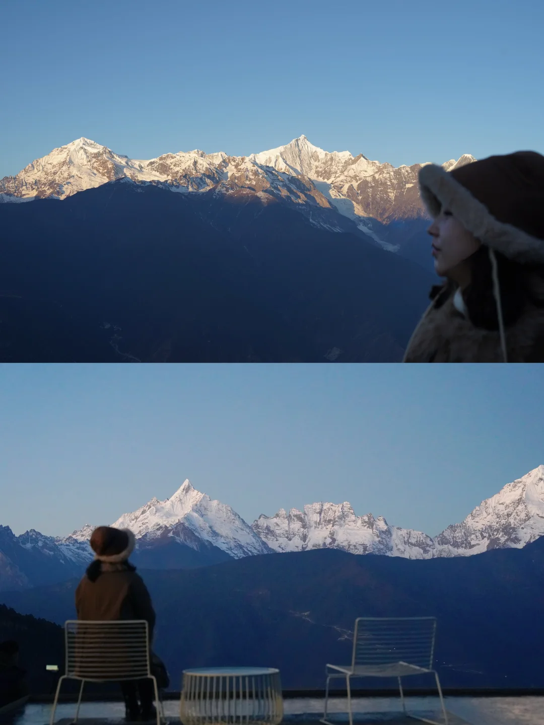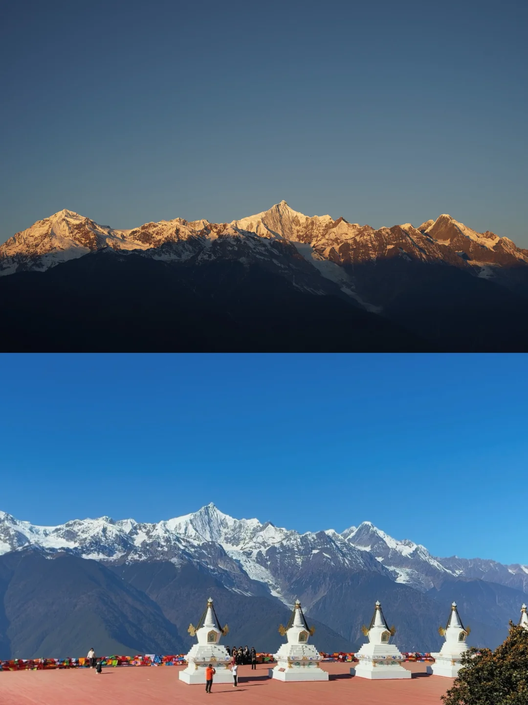 一直想去看梅里雪山,终于在2024年底说走就走了✈️ 为了行程不那么赶,也能好好看下日照金山,于是选择了 雪山醒来酒店⛰️ 这家酒店就在飞来寺客运站旁边,走路2分钟抵达,非常方便👣 房间的景色也十分nice,窗边就是雪山,分分钟拍出人生照片📷 👉Tip: 1、日照金山的时间大概是7点47左右,可以7点钟起来等,日出前的蓝色雪山也很好看;🏔️ 2、晚上的蓝调时刻酒店有安排烟花🎆很浪漫; 3、早上也有飞来寺祈福祈福的活动,可以顺便去飞来寺观景台打个卡; 4、提前备好高原维能,对高反很管用;