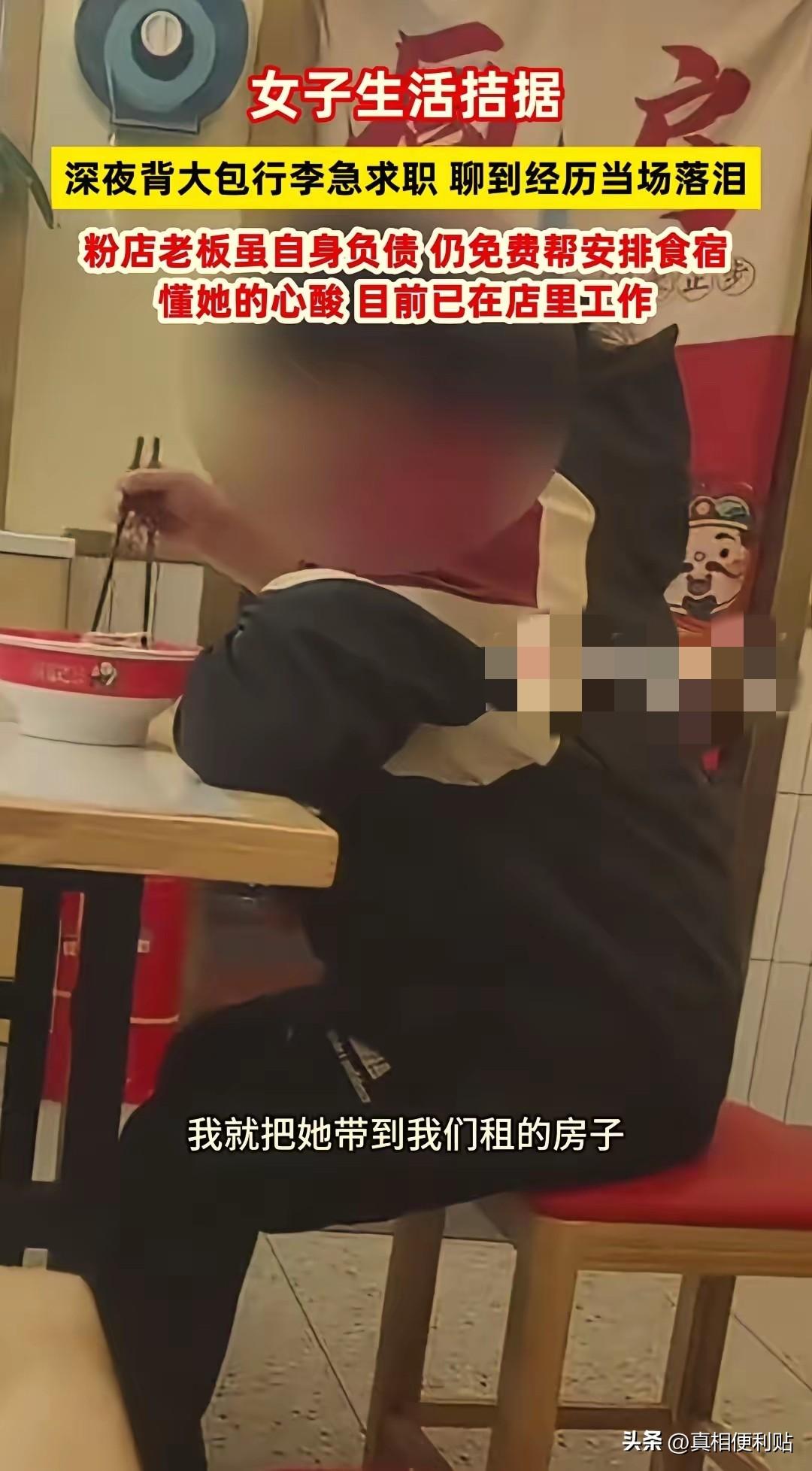 “太仗义了!”湖南长沙,一女子半夜背着行李找工作,被询问的店主本打算拒绝,结果聊了几句,女子突然忍不住落泪,她不但没地方住,身上也很拮据,实在无处可去。店主于心不忍,不仅请她吃了一碗粉,还做了一个让她意想不到的决定。 这件事发生在2026年3月的长沙深夜,那时候街面上已经没多少人了,一家临街的小餐馆正准备收拾打烊,就在这时,门口出现了一个身影,显得格外突兀。 那是一个看起来风尘仆仆的女人,一手拖着行李箱,背上还背着那种打工者常用的沉重编织袋,她在门口犹豫了一下,还是鼓起勇气冲着店里问了一句:“师傅,咱们店里还招人不?” 说实话,老板当时心里的第一反应是拒绝,做过餐饮的都知道,店里的人员配置都是有数的,多一个人就是多一份实打实的开支,况且自家生意也没火爆到忙不过来的地步。 但他刚想挥手回绝,眼神却在这个女人脸上停住了,那是一张极度疲惫的脸,眼神里透着一股子绝望,还有那种生怕被赶走的惊惶。 老板也是在社会上摸爬滚打过来的,他大概读懂了这种眼神,到了嘴边的“不招”硬是咽了回去,改口招呼她先进店里歇个脚。 这一坐下,女人像是被抽走了全身的力气,紧绷的神经瞬间断了,她也没瞒着,带着哭腔说自己出来找活干,身上的钱已经花得见底了,连那种最便宜的小旅馆都住不起。 眼瞅着天黑透了,要是找不到落脚地,今晚就只能流落街头,说到伤心处,她再也忍不住,把头埋进那个粗糙的手掌里痛哭起来。 老板是个实诚人,不会说什么漂亮话安慰人,他默默转身走进后厨,没一会儿,端出来一碗热气腾腾的汤粉。 在这个微冷的深夜,这碗粉不仅仅是食物,更像是一种久违的安全感,女人捧着碗,眼泪止不住地往汤里掉,大口大口地吃着,像是要把这一路的委屈都咽下去。 看着她狼吞虎咽的样子,老板心里有了计较,吃完后,他当场拍了板:店里虽然不缺长期工,但可以先给她腾个位置打打杂,管吃管住,工钱照算。 如果以后她找到了更好的去处,随时可以走,当晚,老板就把店里平时员工午休的地方收拾了一下,让她安顿了下来,不用再去面对外面冰冷的街道。 这事儿后来在网上传开了,网友们的反应很真实,有人点赞,说长沙人霸蛮又仗义;也有人替老板捏把汗,说现在社会复杂,防人之心不可无,收留一个完全不知根知底的陌生人,万一引狼入室,或者惹上纠纷怎么办? 这种担心不无道理,毕竟也就是萍水相逢,但老板当时其实是在赌,他赌的是人在最难的时候被拉一把,会记着这份情。 事实证明,他赌赢了,在随后的日子里,这个女人干活极其卖力,眼里有活,手脚麻利,她是真的想用劳动,来回报这份难得的信任。 这个故事之所以打动人,不是因为什么宏大的叙事,而是因为它足够真实,老板不是什么大富大贵的慈善家,他也要算计成本,也要养家糊口。 但在那一刻,出于一种对底层打拼者感同身受的怜悯,他宁愿自己稍微紧巴一点,也给对方留了一条生路。 那种“能帮一把是一把”的朴素善意,比任何华丽的修辞都更有力量,那碗长沙米粉,暖的不光是胃,更是让人在这个有些冷硬的世界里,重新相信了一次人心。