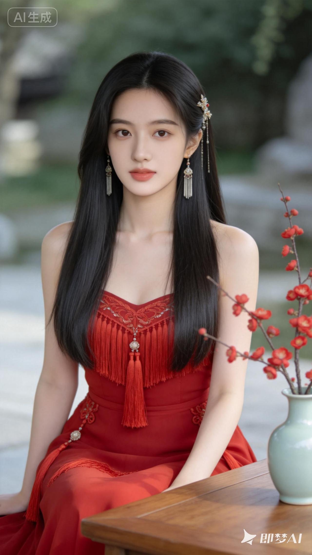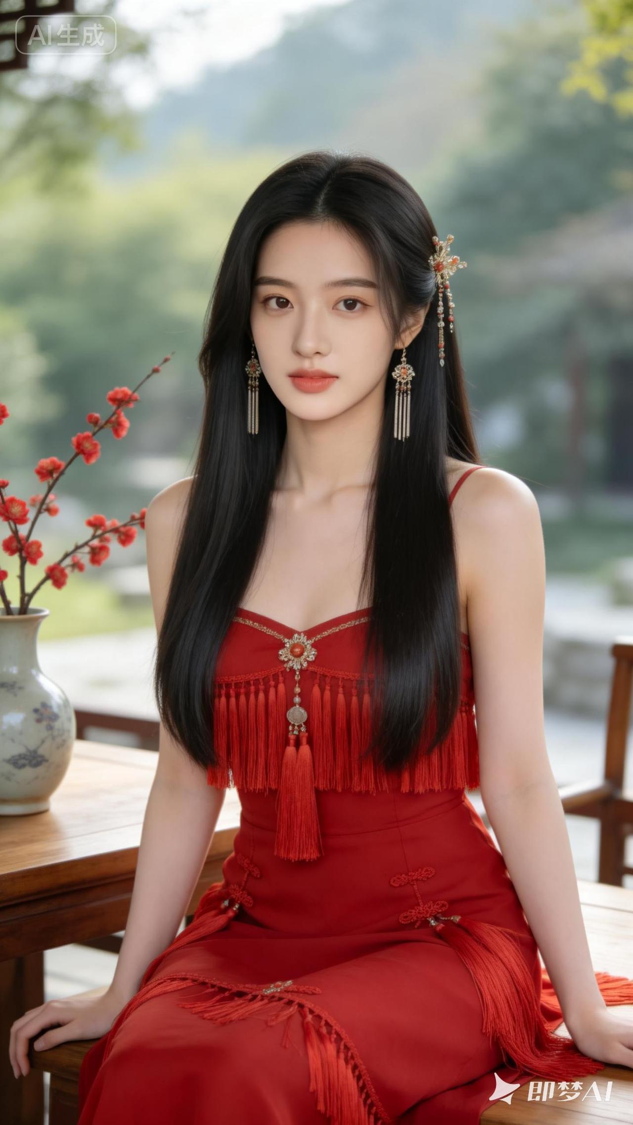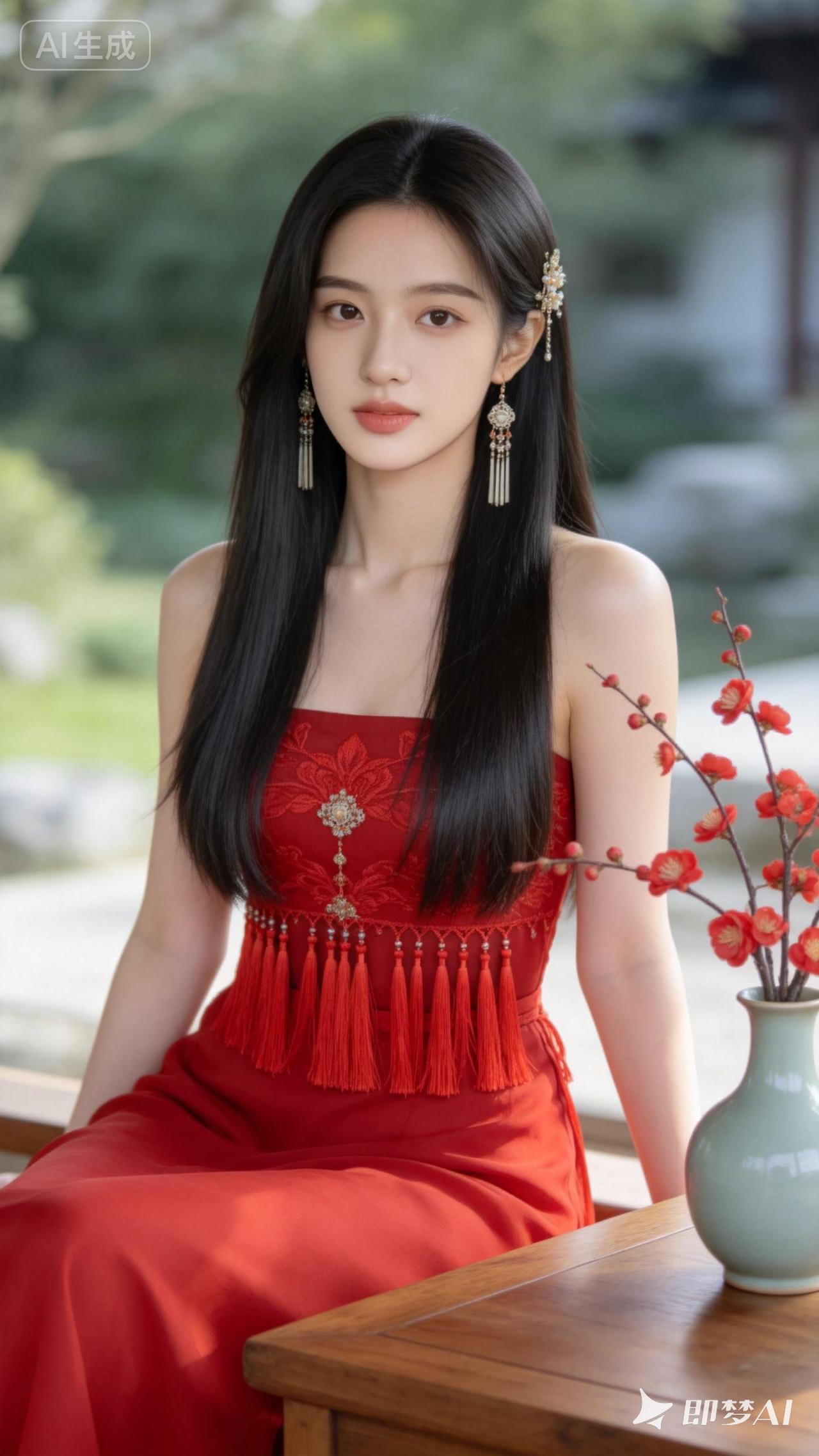 古典风韵,静坐亭中,手捧古卷,悠然自得。