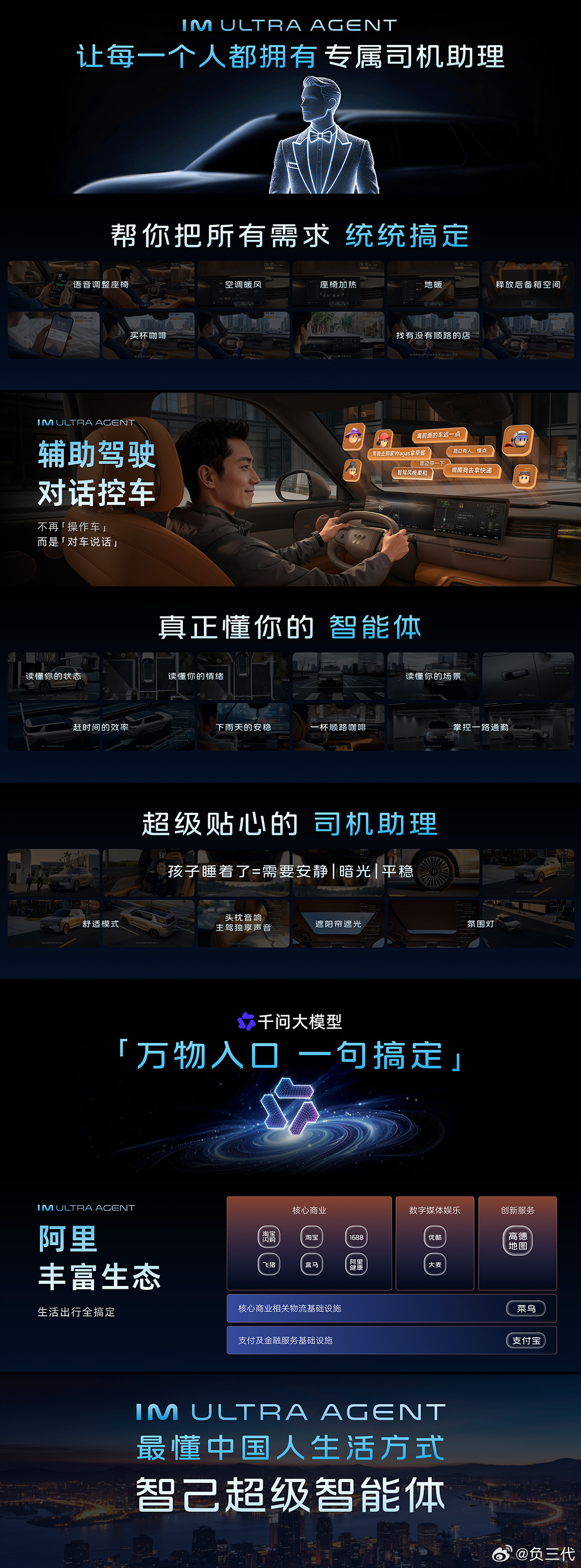 智己整了个大活!全新超级智能体IM Ultra Agent官宣,首款上车车型就是LS8,3月26号开启预售。这智能体可不是普通语音助手,背靠千问大模型,能懂情绪懂场景,还打通阿里全系生态,一句话就能搞定车辆和出行需求。搭配L4级智驾大模型和国标线控底盘,从执行指令变全域代劳,直接把车载AI从工具变成贴心专属司机,智己这波智能化升级千问大模型首发搭载智己LS8智己LS8预售发布定档3月26日
