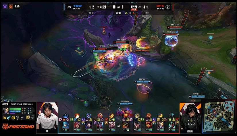 22分钟,BFX在河道打出1换3,随后拿下大龙