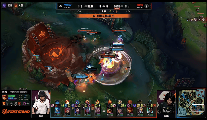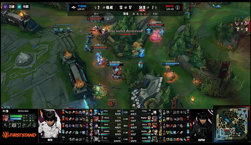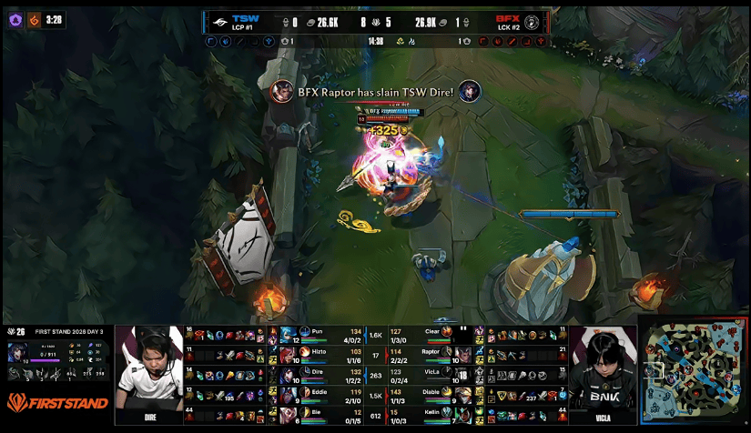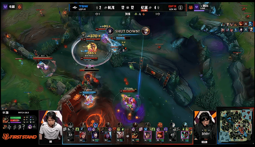 18分钟,BFX在河道附近击杀TSW上辅