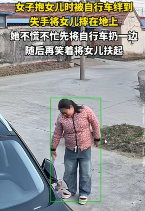 女子这顿操作,感觉这她不是亲妈。 山东,一女子抱女儿时被自行车绊倒,失手将女儿摔在地上。结果,她不慌不忙先将自行车扔一边,随后再笑着将女儿扶起来。 作为母亲,抱着女儿,绊倒了,第一反应居然是把孩子扔了。就算是本能自我保护反应,人在突然失衡的瞬间,确实很难保证还能稳稳抱住孩子,这点可以理解。 真正让人觉得“不像亲妈”的,是摔倒之后的一连串反应。孩子这么高的地方,摔在地上了,她第一反应不是看孩子有没有事,安慰孩子。而是先去把自行车扔到一边,还有心情接过儿子给的东西。女子全程表情很淡定,甚至还笑着去扶孩子。 不是说女子一定不爱孩子,但这份反应,真的太冷静、太不符合大多数母亲的本能了。 对一个正常母亲来说,孩子突然摔在地上,第一本能一定是慌、心疼、赶紧哄孩子,抱起来检查,而不是先处理车、甚至孩子在那哭,自己却在笑。 但是,每个人表达爱的方式不同,也许她有自己的考量。只是希望她以后能多站在孩子的角度,在孩子摔倒时,能第一时间给予关心和安慰,让孩子感受到她满满的爱。