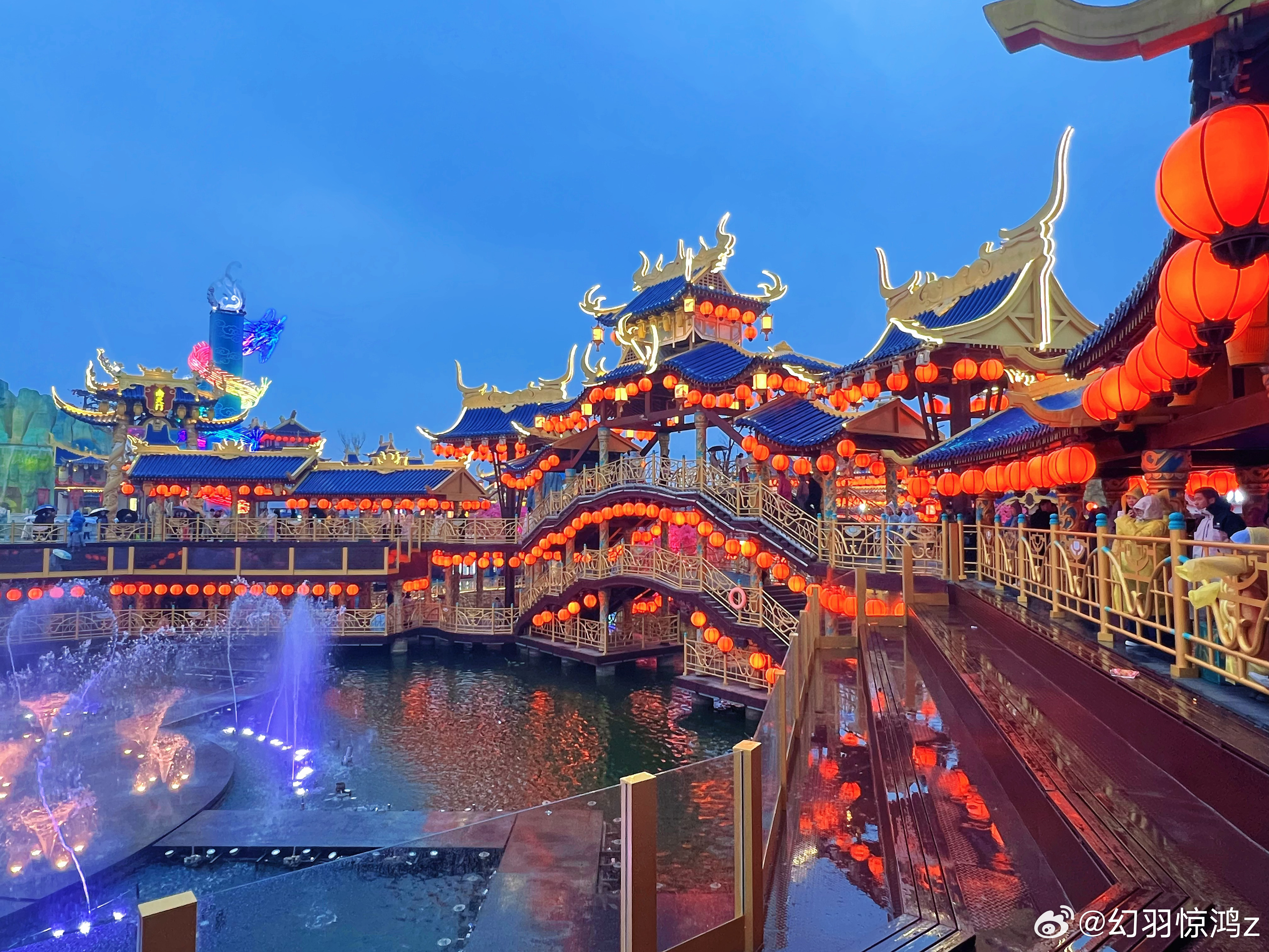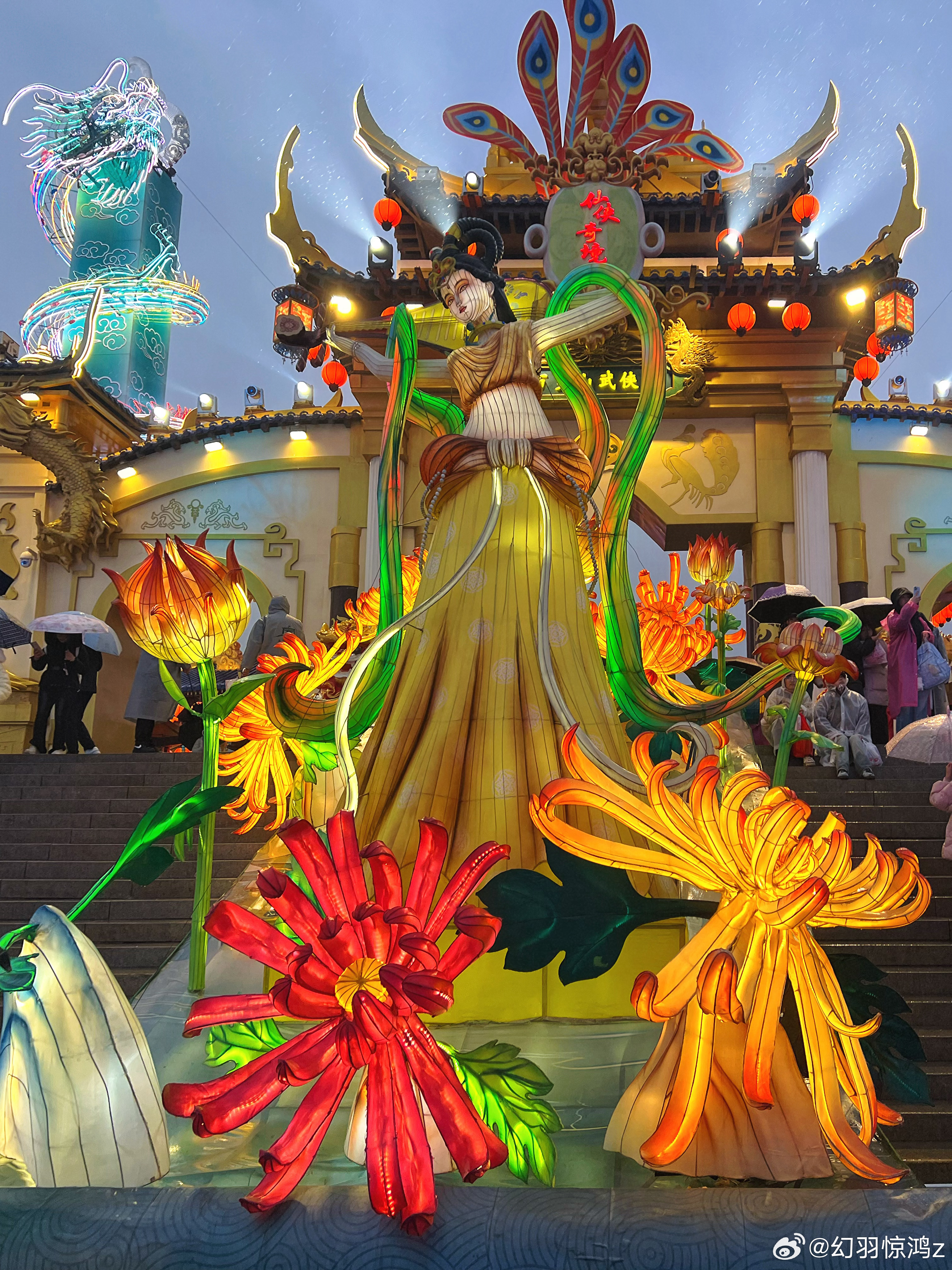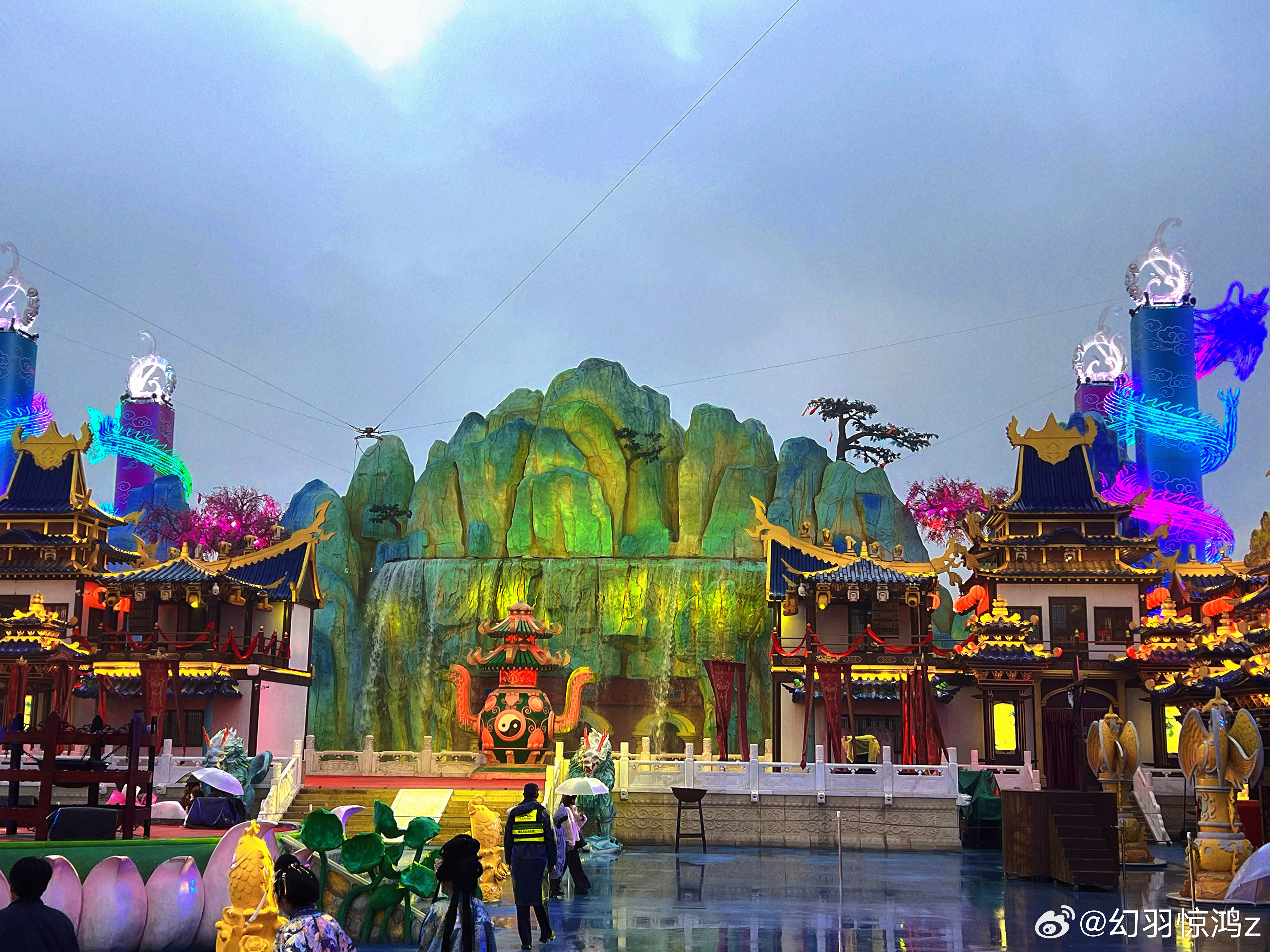 雨天专属浪漫:雨后的武侠城云雾缭绕,灯笼和油纸伞将古街妆点得如诗如画,水浒城侠义故事连续不断,画风突变从古风仙侠到朋克机械,银丝古建也别有特色。大杂烩还杂得如此骨骼清奇,中雨也挡不住人流如织。幻羽惊鸿走天涯开封万岁山武侠城 开封 开封·万岁山武侠城