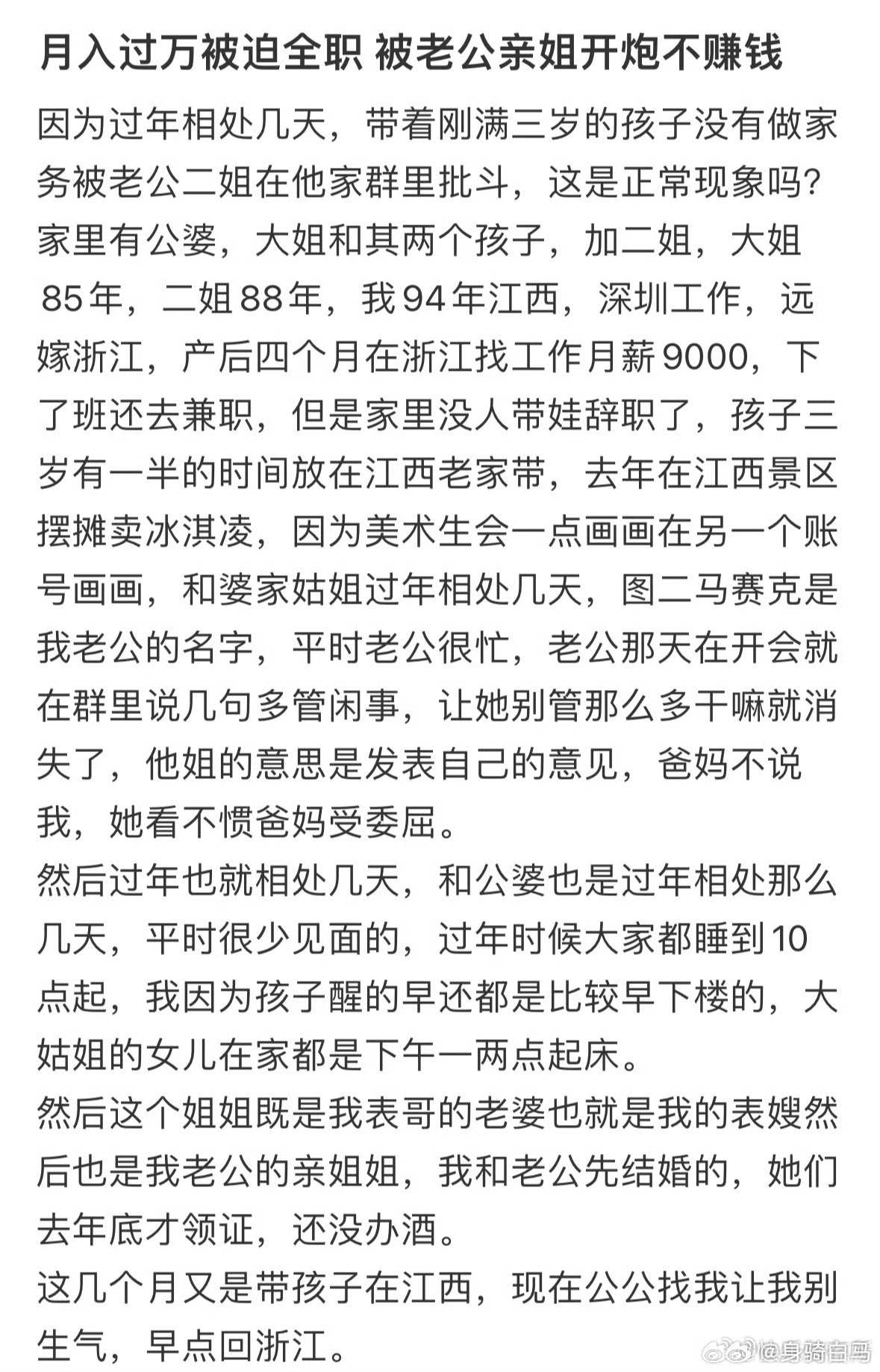 月入过万被迫全职 被老公亲姐开炮不赚钱