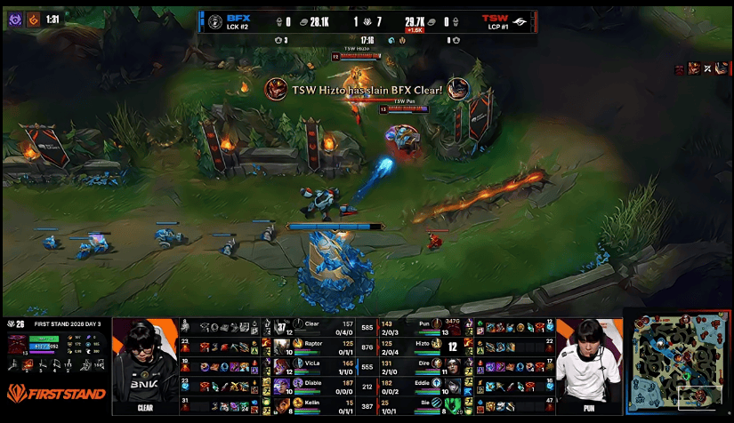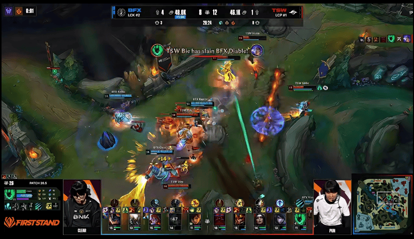 26分钟,芸阿娜被秒,但后续BFX击杀TSW双C