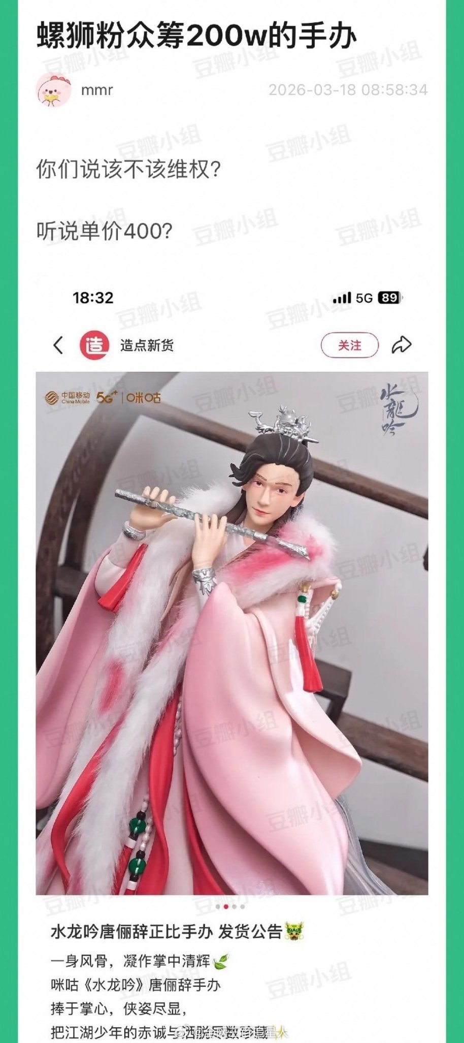 这竟然是水龙吟和咪咕联名的手办……还叫什么手办啊简直是手残,这还要399真的拿粉