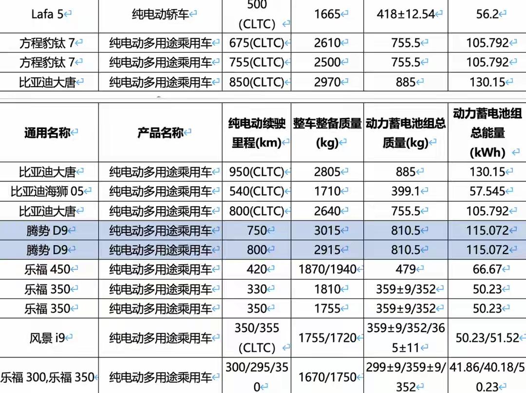大唐EV,低配105.79度电池包,高配130.15度电池包。 105.79度电池包,续航800公里。 130.15度电池包,续航955公里。 标配兆瓦闪充,10分钟充满电。 入门版就105.79度电池包,这个厉害了。 蔚来ES8,102度电池包,40.98万。 问界M8,100度电池包,37.98万。 乐道L90,85度电池包,26.58万。 方程豹钛7,搭载105.79度电池包,预售价22万~25万。 可以推断出大唐EV的价格,低配105.79度电池包,起步价在25万左右,高配130.15度电池包,起步价在30万左右。 大型SUV市场的格局,要重新改写了。 这样的电池包配置,就算零跑D19见了,都得乖乖叫声哥。