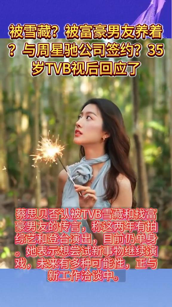被雪藏?被富豪男友养着?与周星驰公司签约?35岁TVB视后回应了。 蔡思贝正式离开TVB,结束十三年演艺旅程。她曾获港姐亚军,成为TVB首位90后视后,但私生活绯闻众多,尤其与王浩信的争议传闻影响事业,导致口碑下滑戏约减少。 蔡思贝否认被TVB雪藏和找富豪男友的传言,称这两年有拍综艺和登台演出,目前仍单身。她表示想尝试新事物继续演戏,未来有多种可能性,正与新工作洽谈中。