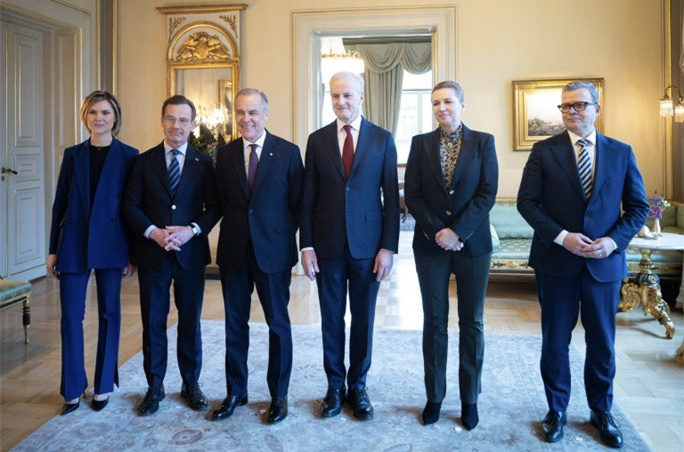 卡尼(左三)上周与北欧五国领导人在奥斯陆会晤卡尼X账号