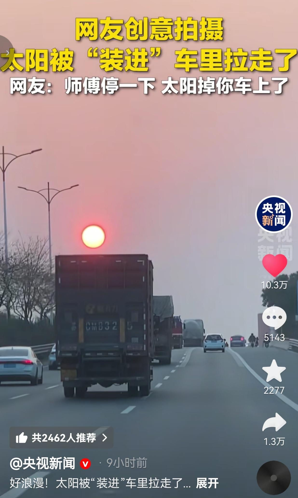 离谱!太阳被货车“装”走了?央视都转了,网友:师傅快停车! 你们敢信?我反