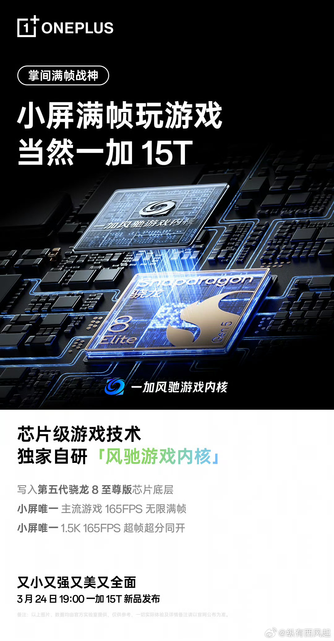 一加15T官宣3月24日发布,你们要的小屏水桶机来了。目前已知的爆料参数: