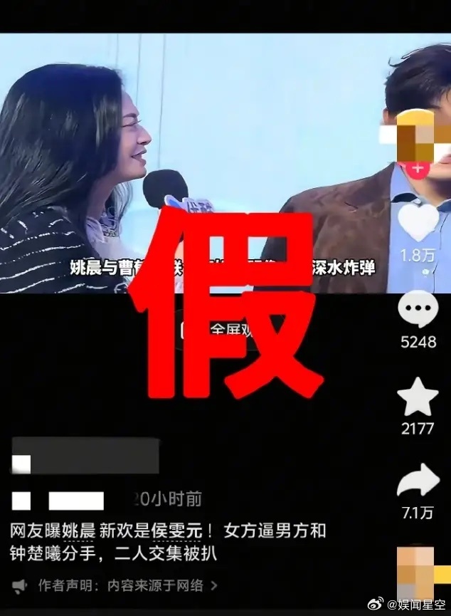 姚晨侯雯元辟谣恋情!姚晨前脚刚官宣和曹郁离婚,后脚就传出了和侯雯元因戏生情,逼侯雯元和钟楚曦分手的消息,不过目前双方已经辟谣,姚晨和侯雯元合作过《以美之名》,饰演一对情侣,该戏23年9月开机,24年1月杀青,25年3月份播出,当时侯雯元和钟楚曦还没有分手。