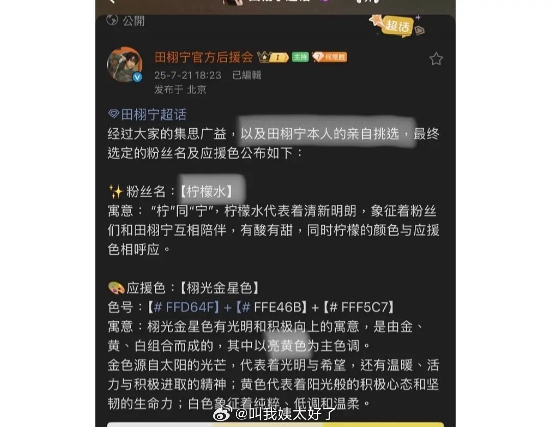 疑似若若养的狗叫柠檬茶,田栩宁给自己的粉丝取名:柠檬水。粉丝真的是Play的一环啊。