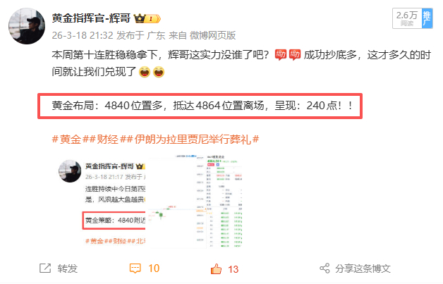 兄弟们,周二咱们直接四张策略全部兑现,稳稳拿下四连胜!本周一路连胜,现在已经干到十连胜,实力摆在这,不玩虚的。昨天盘面那波暴跌,相信大家都看在眼里,很多人慌了、乱了,但咱们思路一直清晰。今天凌晨美联储利率决议也出来了:利率维持不变,降息再度延后。消息落地,行情方向反而更明确。接下来市场怎么走,机会在哪,咱们继续按计划执行,稳稳把收益拿住,连胜继续冲!黄金金价美将只剩一艘航母用于对伊朗袭击