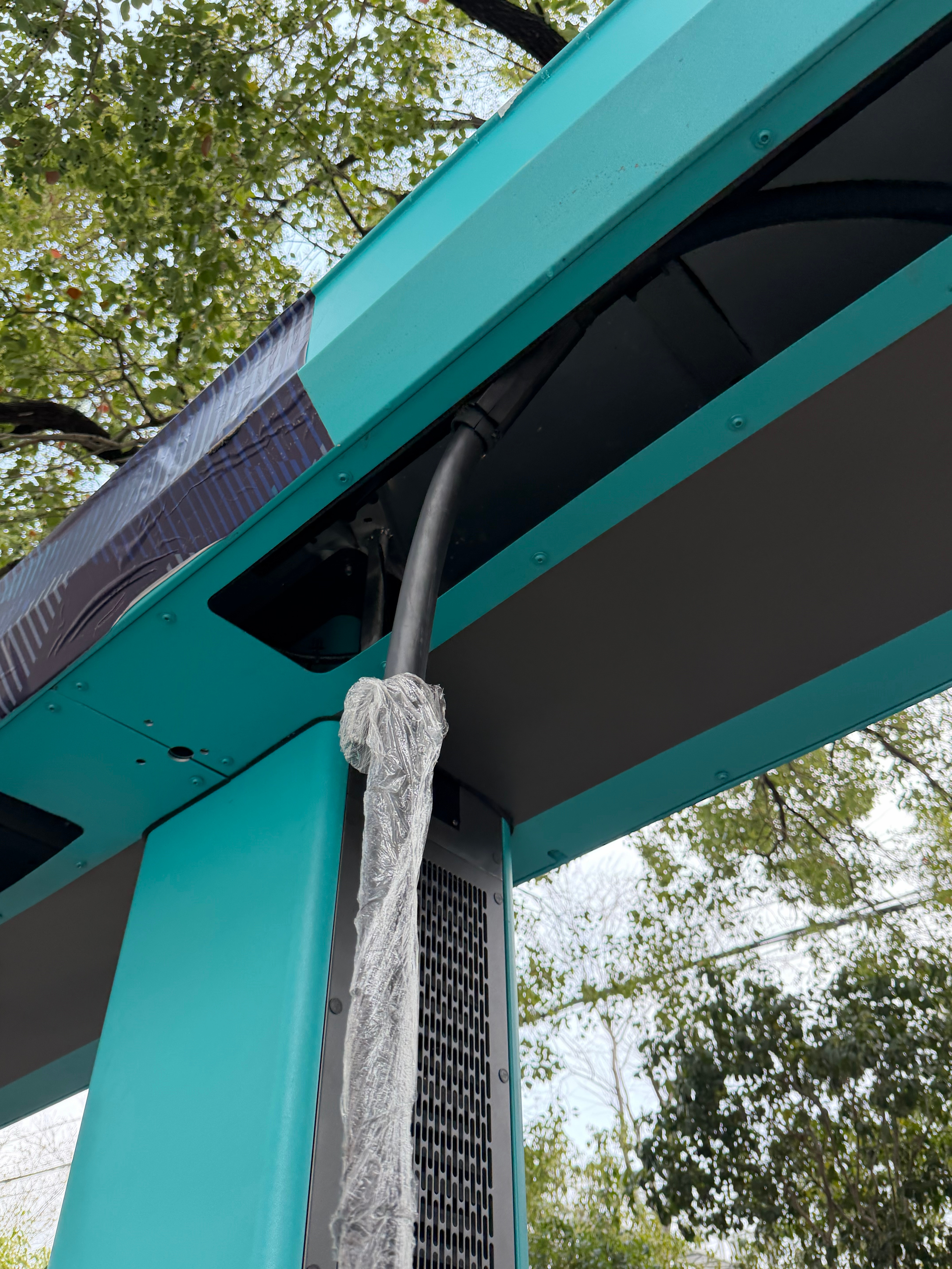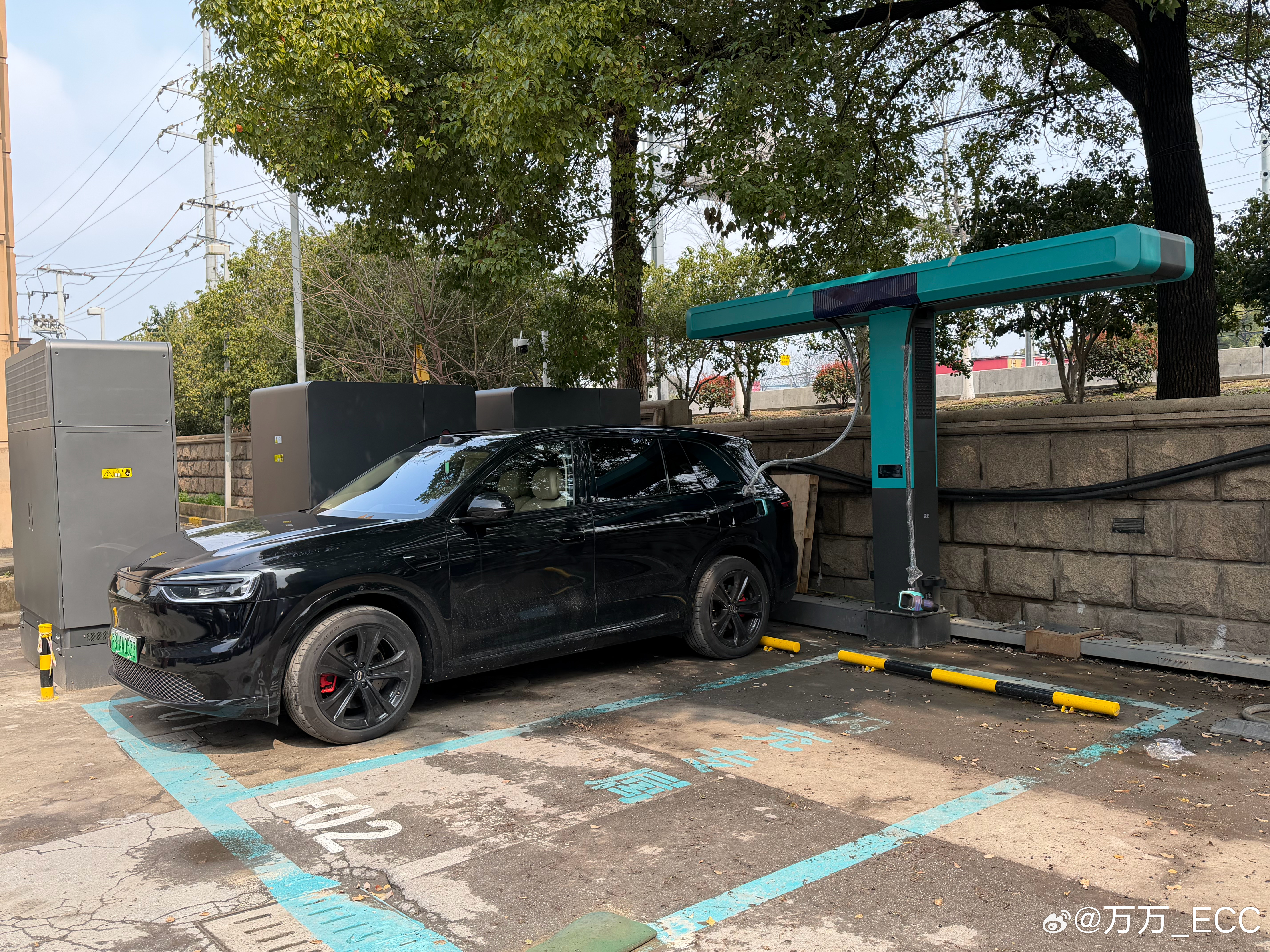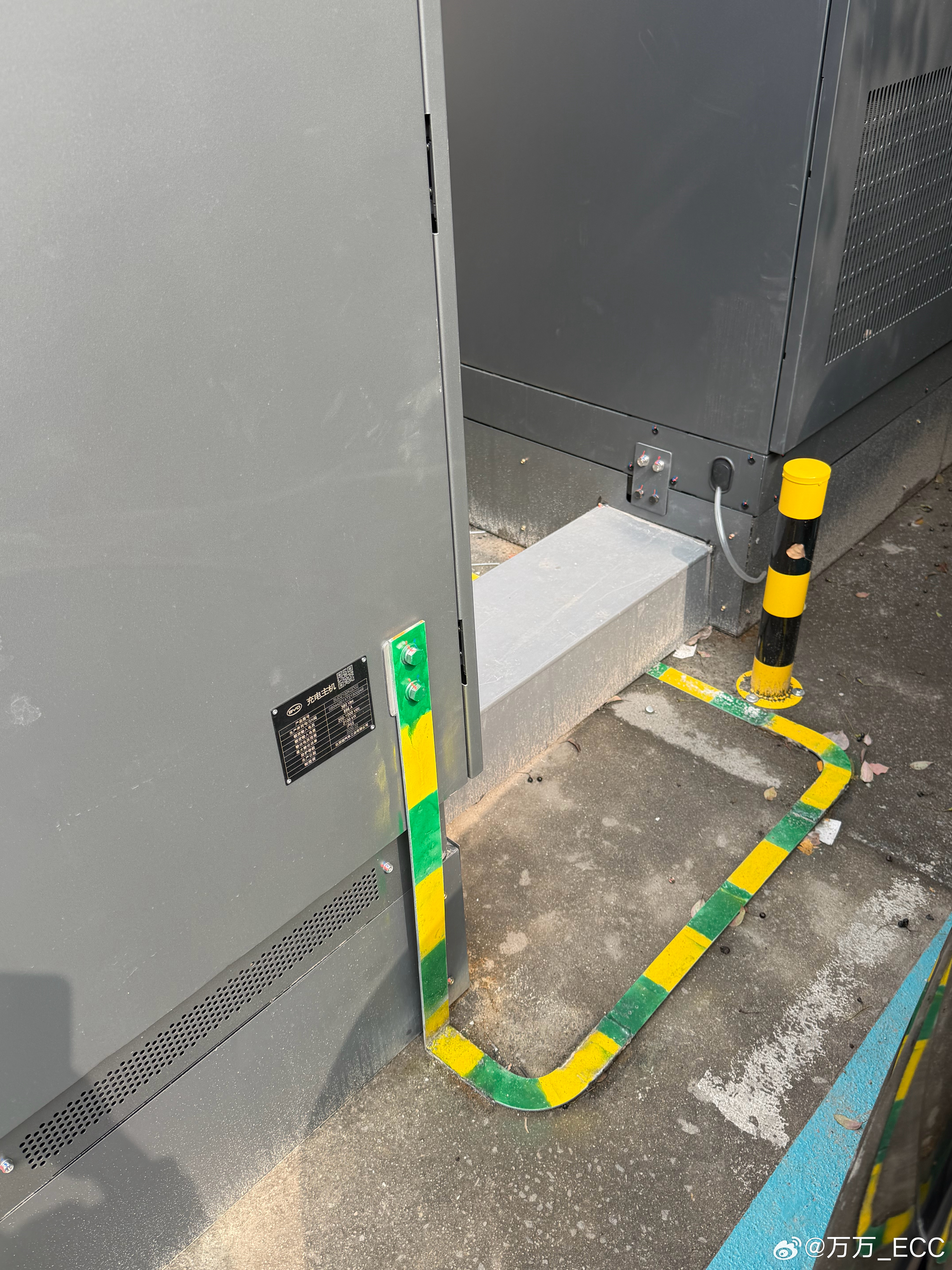 这批桩明显刚上线,连枪线的保护膜都没撕干净。水蓝色外观挺醒目,但放在角落里,App指引也还不完善,实际找起来还是要费点时间。