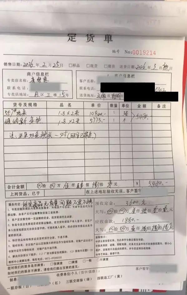 “到嘴的肉哪有吐出来的道理!”云南昆明,女子在某家具店相中一款床,并付了3500