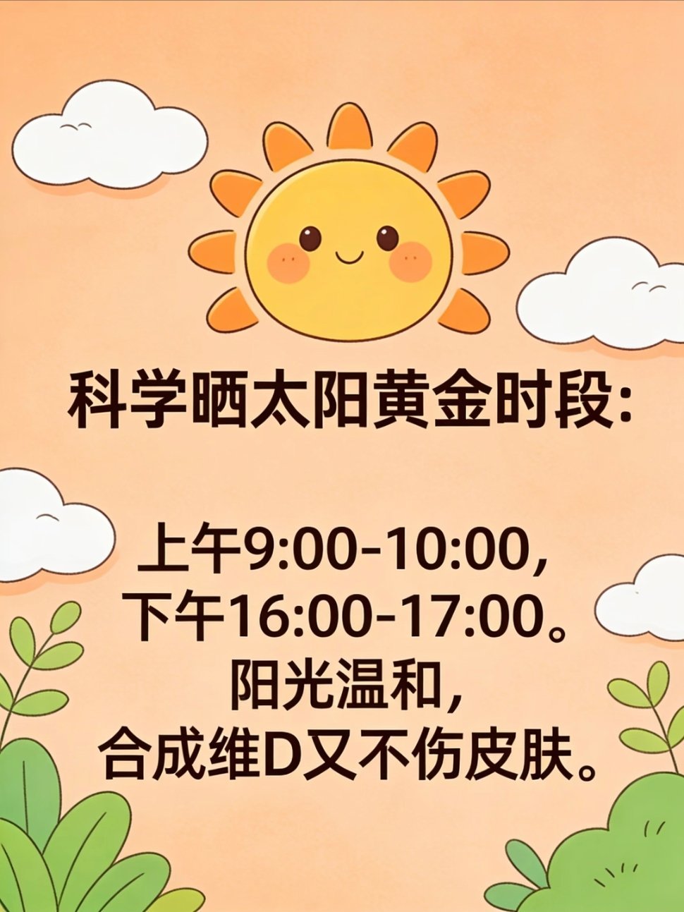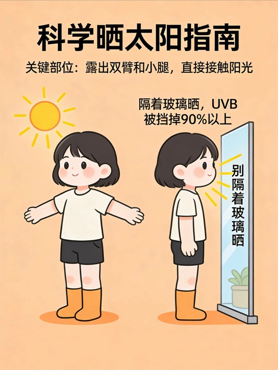 医生建议中午用晒太阳代替午休掐准“黄金时段” :别跟正午的太阳硬刚。上午9: 00-10:00,下午16:00-17:00最合适。这时候的阳 光温和,既能合成维D,又不伤皮肤 。 露出“关键部位” :别裹得严严实实,也别光晒 脸。露出双臂和小腿,直接接触阳光才有效。注意, 千万别隔着玻璃晒,玻璃会把合成维D所需的UVB挡掉 90%以上,晒了也是白晒。 把控“最佳时长” :成年人每天15-30分钟足矣,像 冬天晒后背,温暖又助眠 。!