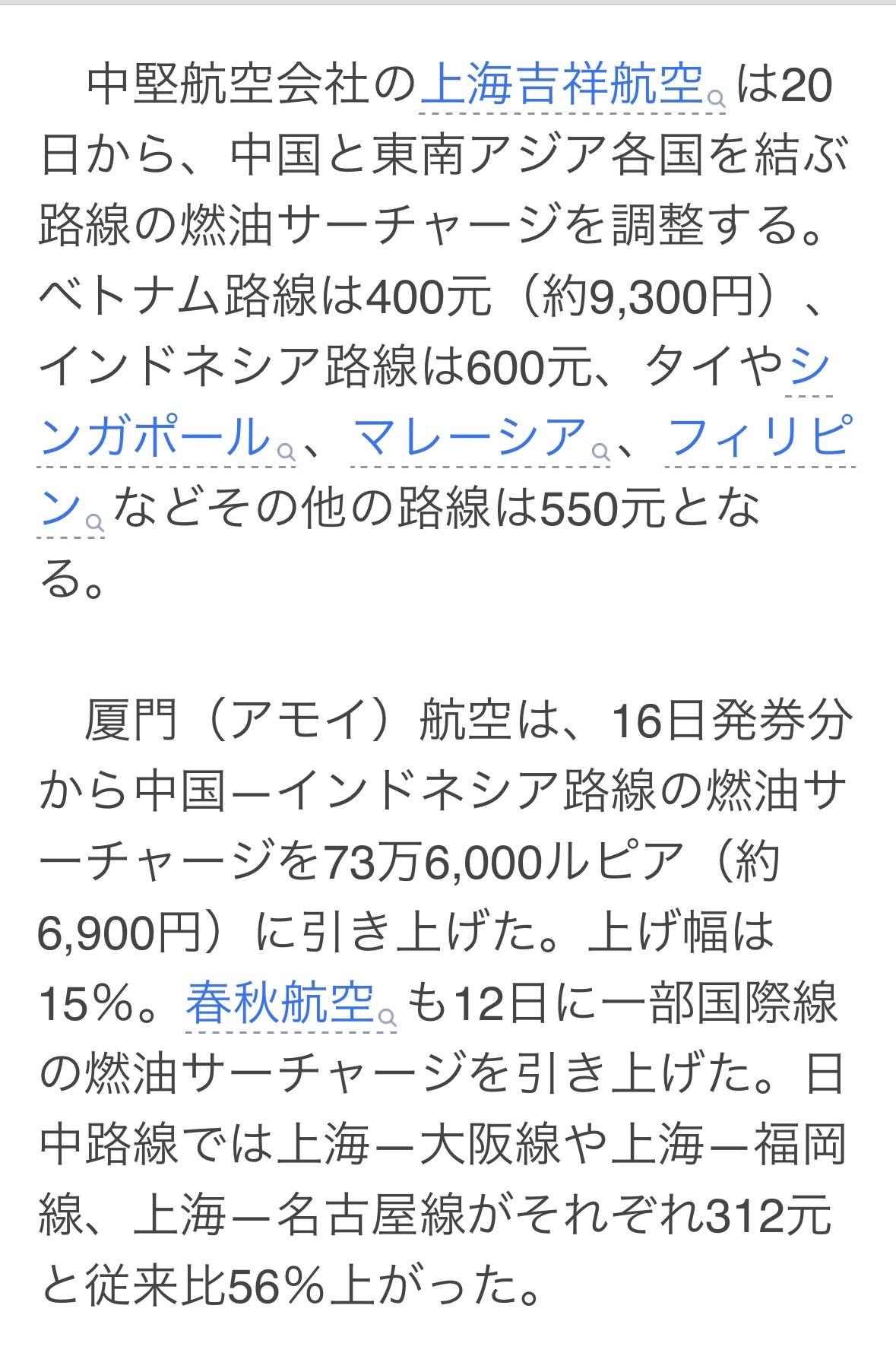 上海吉祥航空将于20日起调整连接中国与东南亚航线的燃油附加费。其中,越南航线的燃油附加费为400元,印尼航线为600元,泰国、新加坡、马来西亚和菲律宾等航线为550元。 厦门航空已将中国~印尼航线的燃油附加费上调至73.6万印尼盾(300 元),涨幅达15%,16日起生效。 日本至中国航线,上海~大阪、上海~福冈、上海~名古屋航线的燃油附加费均上调至312元,较前上涨56%。 中国航空公司每月5日审核燃油附加费。目前,国内航班800公里以下航线的燃油附加费为10元,800公里以上的长途航线为20元。