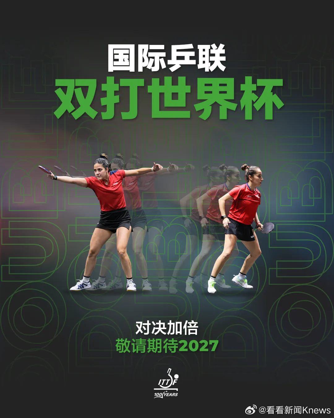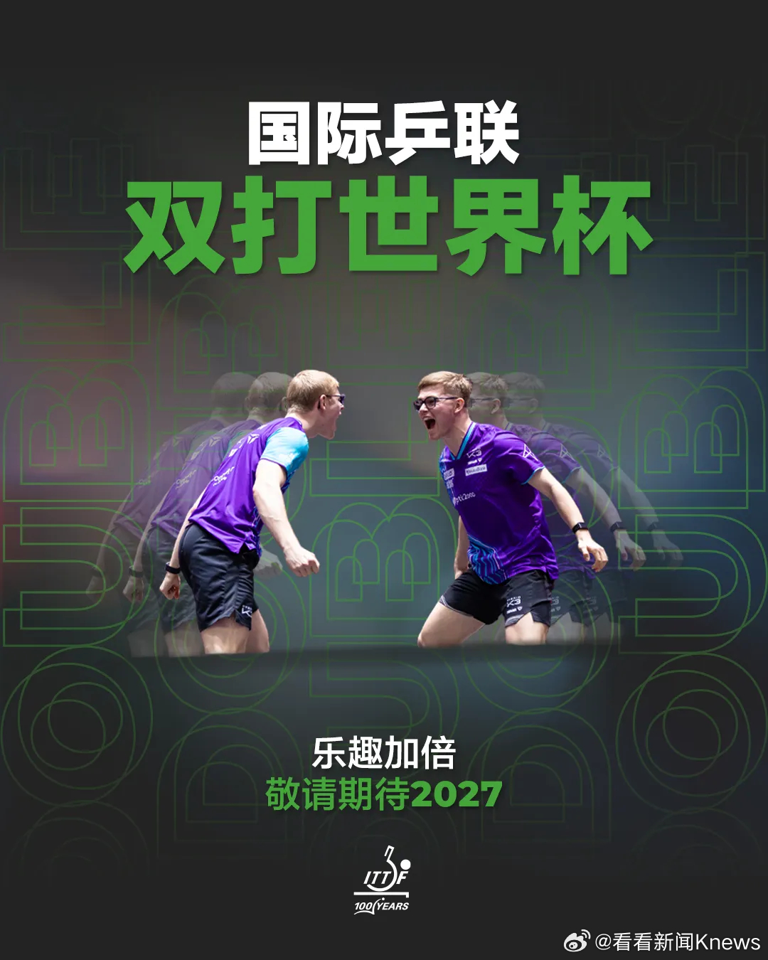 【#国际乒联正式设立双打世界杯#】#王楚钦孙颖莎双打世界杯海报#正式宣布,经国际乒联执行董事会审议批准,正式设立国际乒联双打世界杯。此项全新里程碑赛事将整合男子双打、女子双打及混合双打项目,于2027年正式举办。