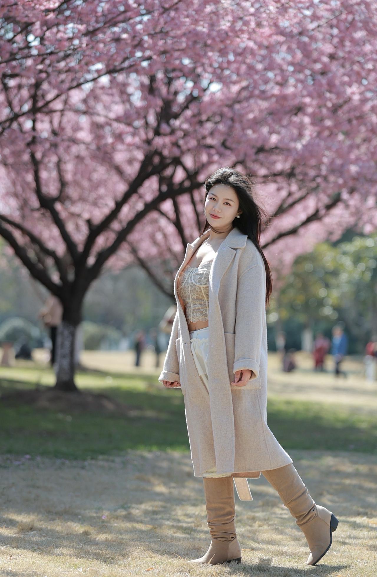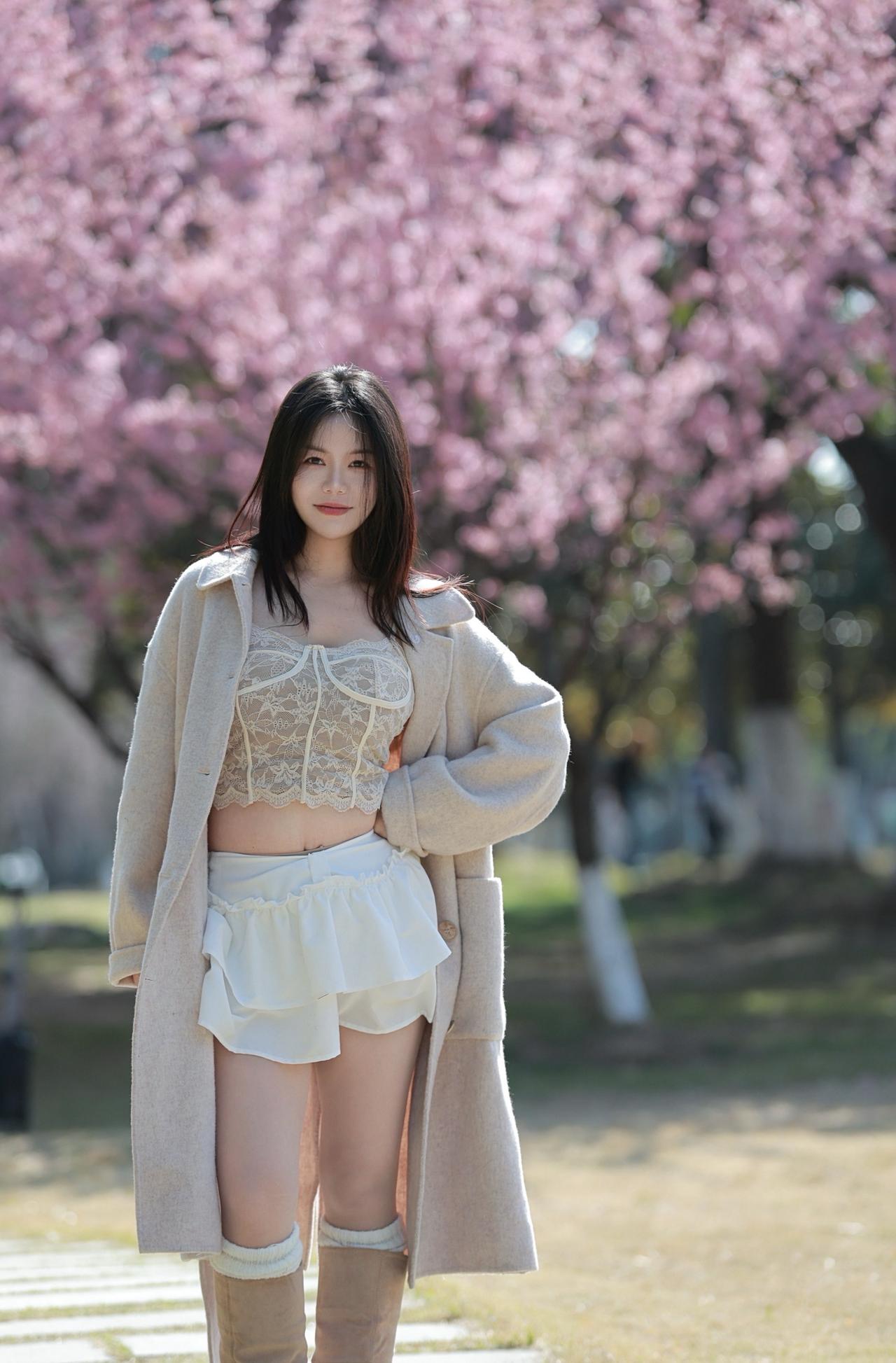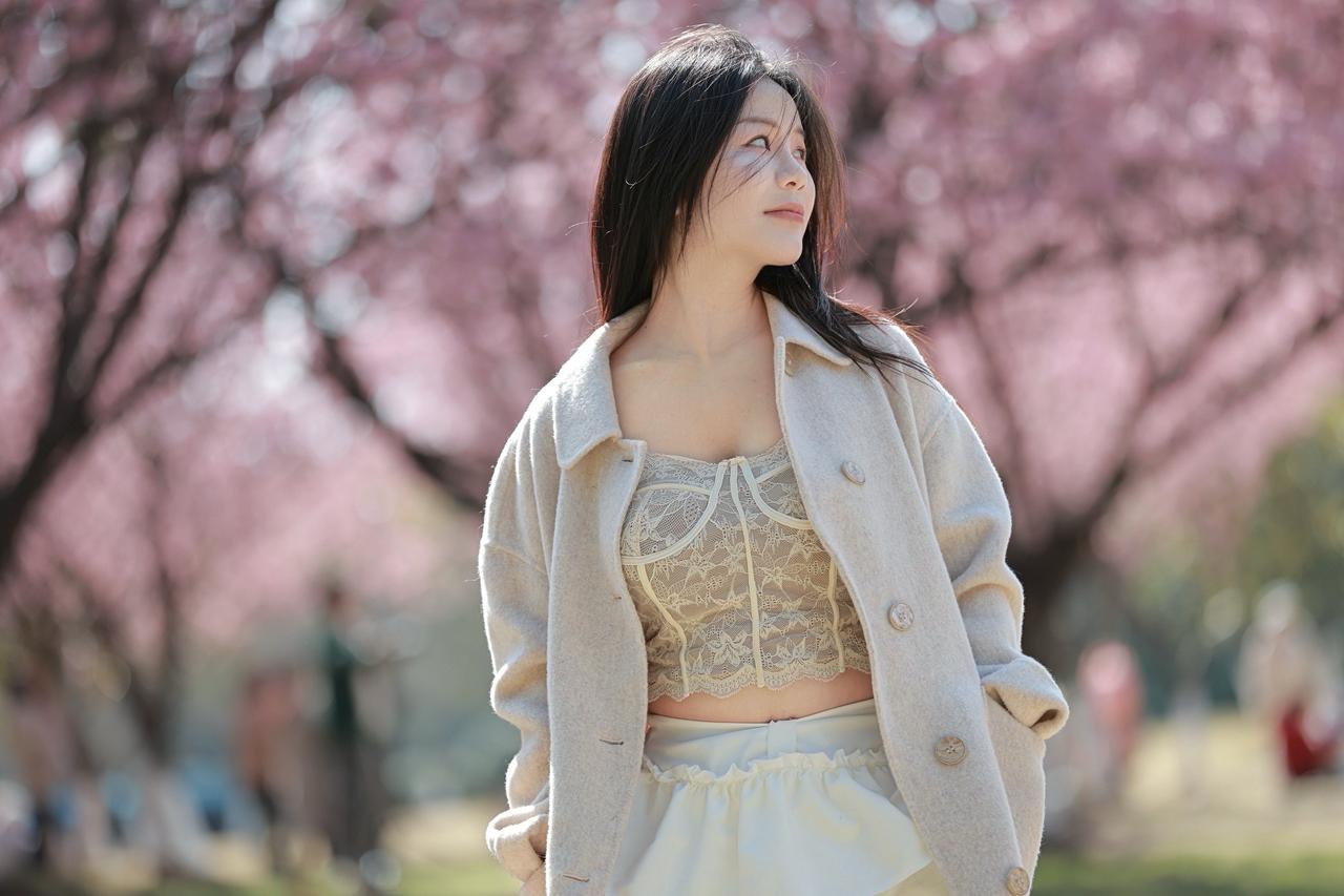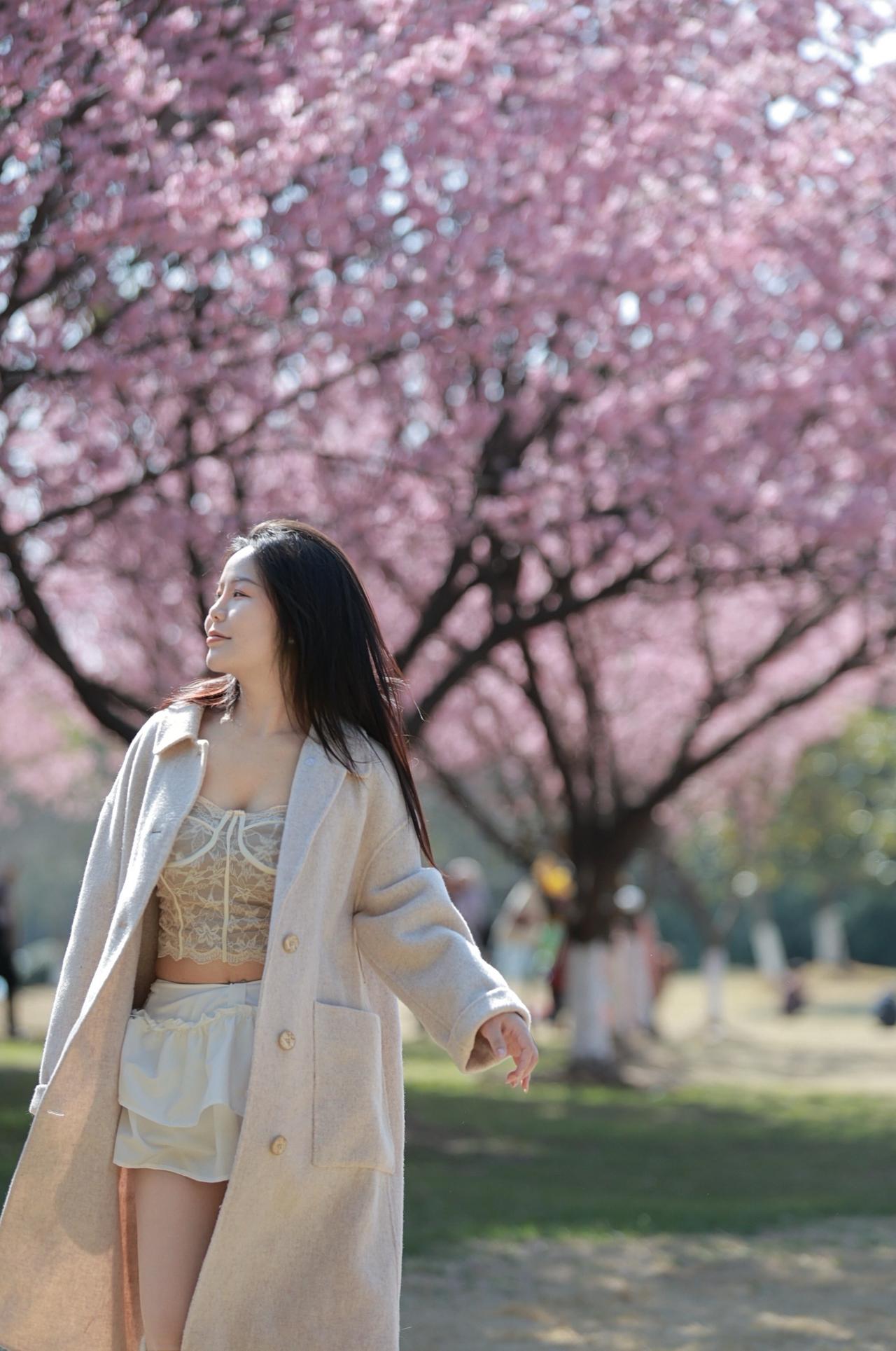 樱花树下一站,就像发张春天的照片。樱花 日系写真 摄影 粉色穿搭和春日的适配度